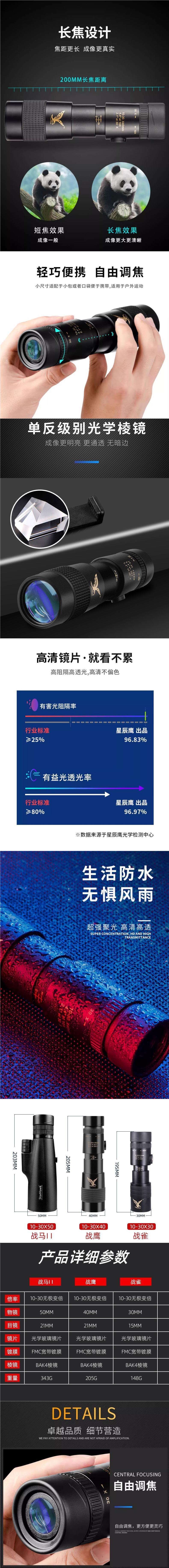 가변 전력 HD 전문 나이트 비전 단안 망원경 고성능 휴대 전화 군사 야외 콘서트 성인 사진