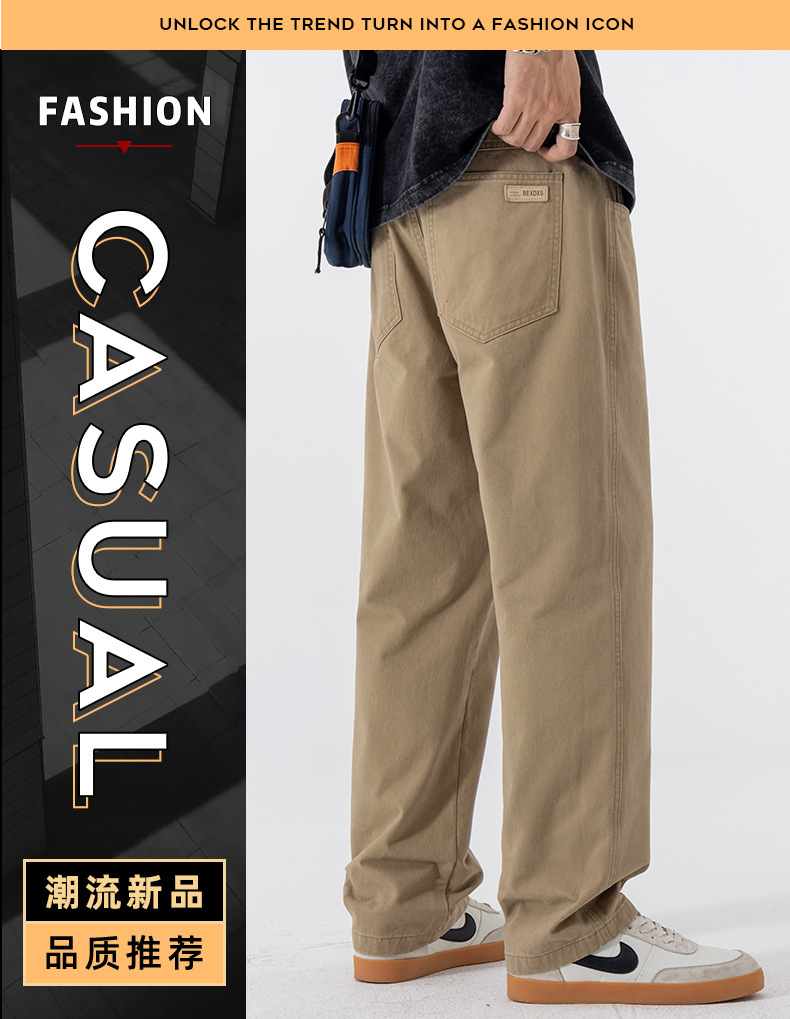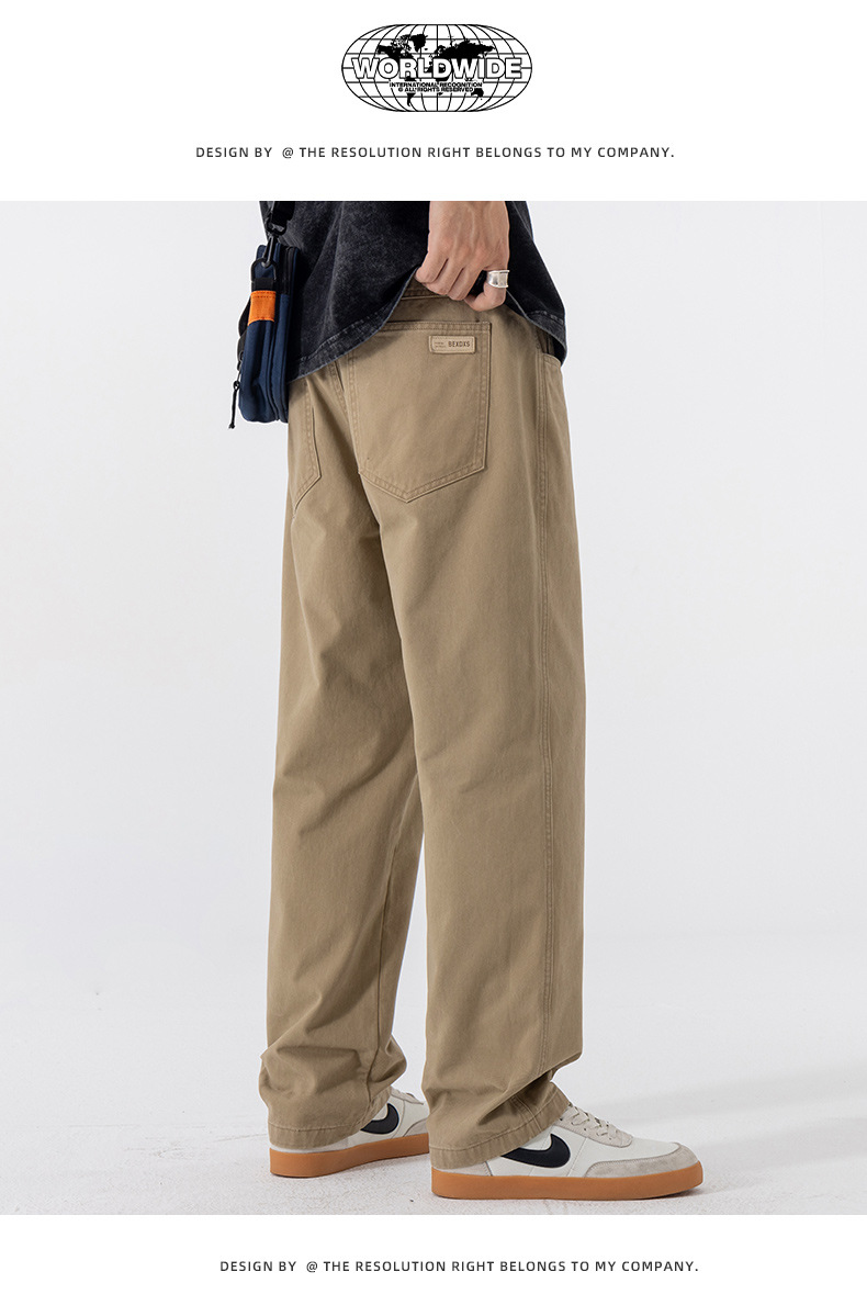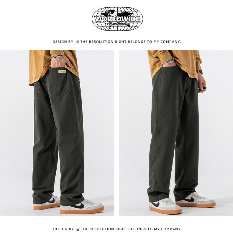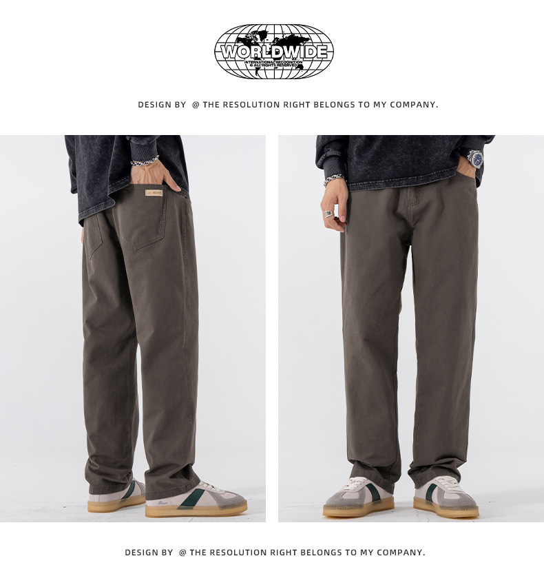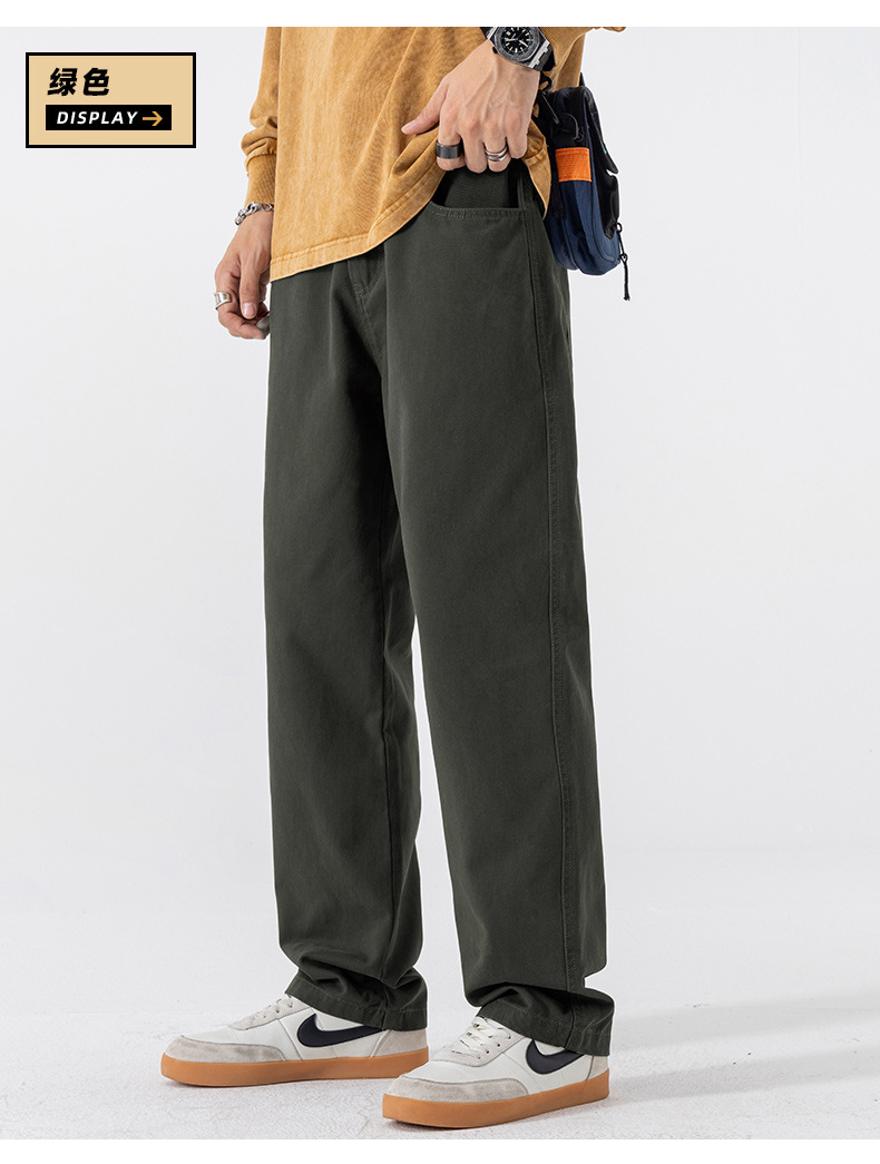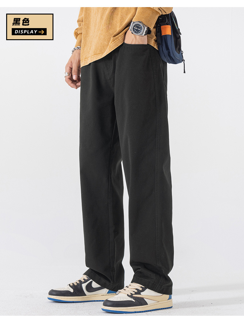 Mu Yuan 남성 패션 브랜드 클린 핏 퓨어 코튼 캐주얼 바지 남성용 루즈 스트레이트 일본 솔리드 컬러 오버스토어 가기