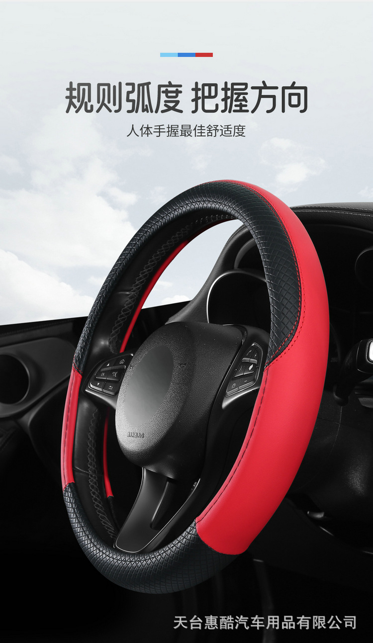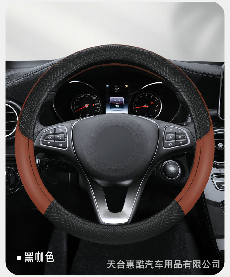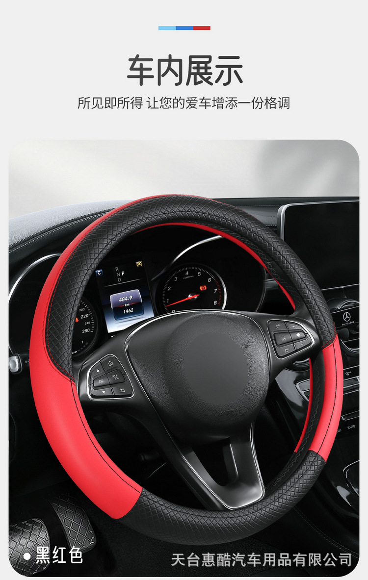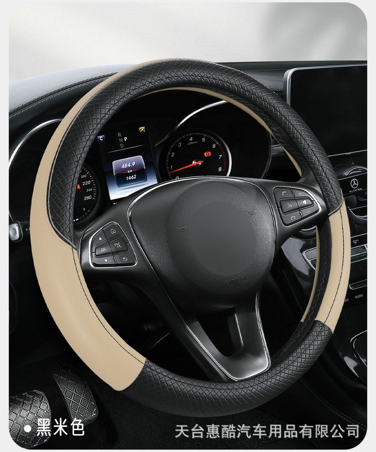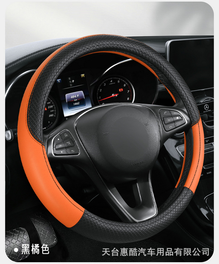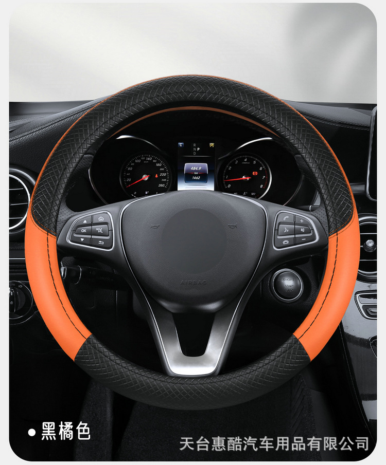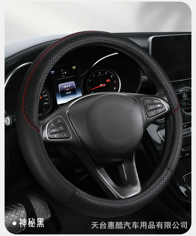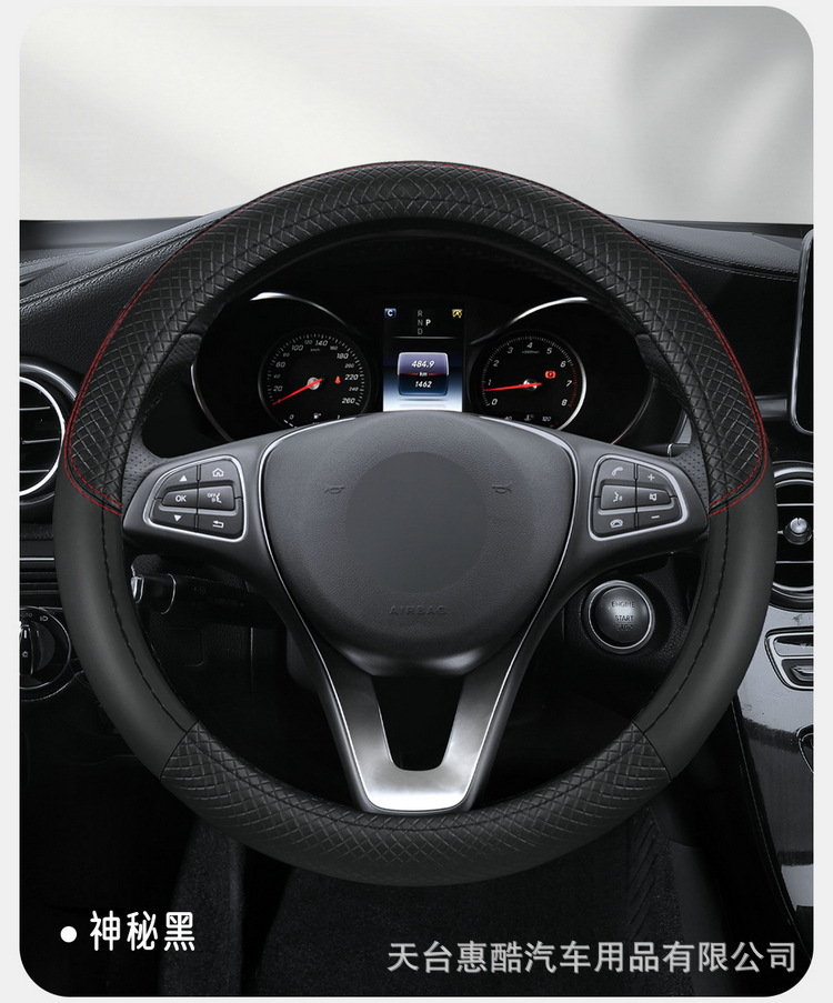 국경 간 자동차 스티어링 휠 커버 사계절 유니버설 미끄럼 방지 여름 양각 가죽 스티칭 통기성 자동차 인테리어 핸들 커버스토어 가기