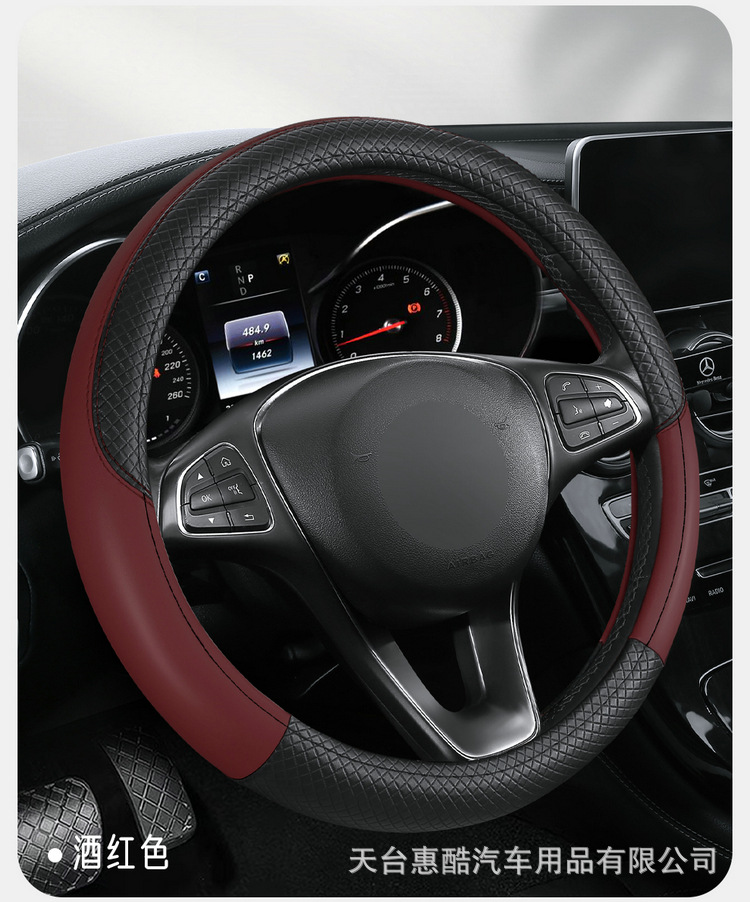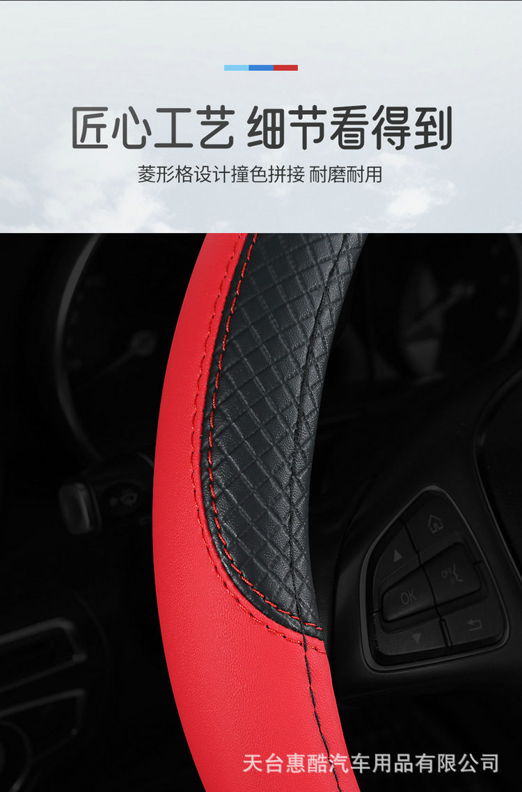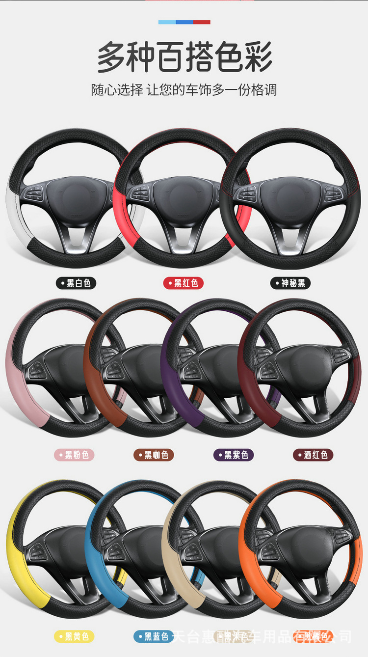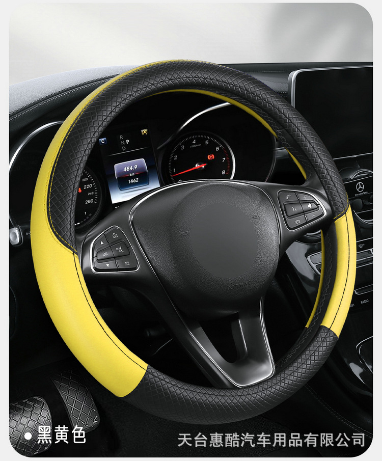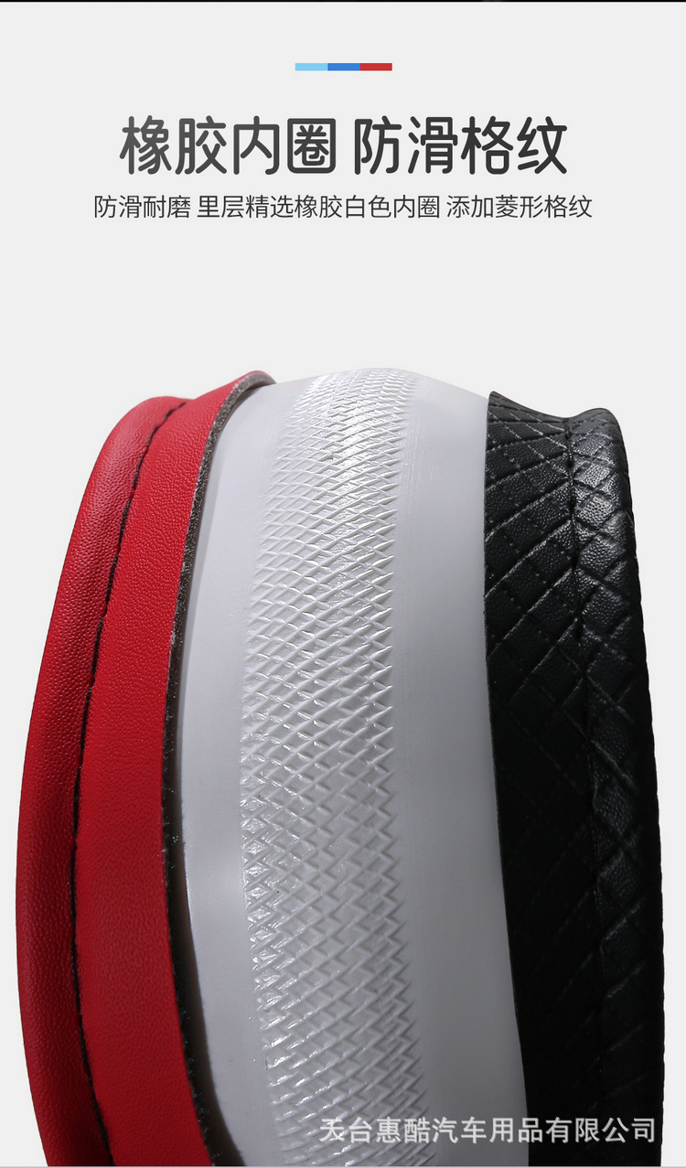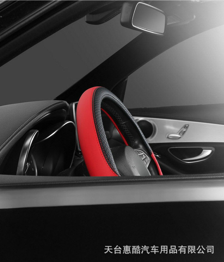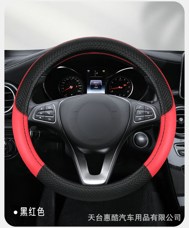 국경 간 자동차 스티어링 휠 커버 사계절 유니버설 미끄럼 방지 여름 양각 가죽 스티칭 통기성 자동차 인테리어 핸들 커버스토어 가기