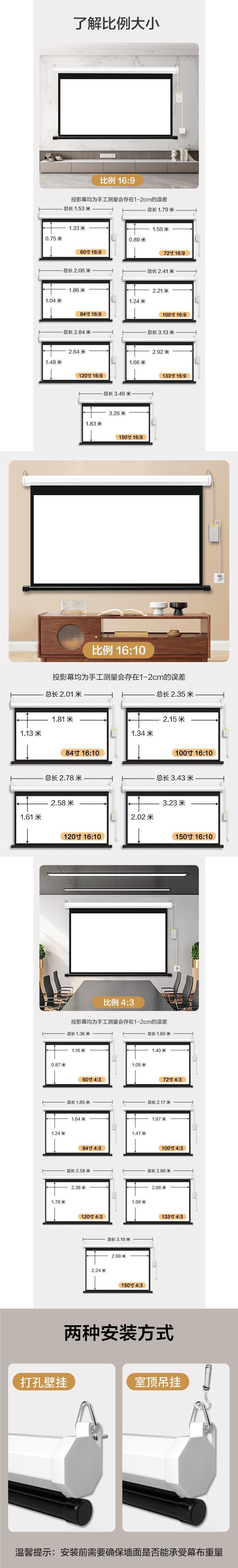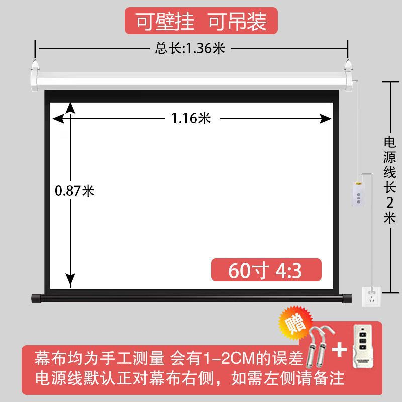 전기 프로젝션 커튼 100 인치 4k HD 홈 커튼 원격 제어 리프팅 자동 벽 프로젝터 커튼스토어 가기
