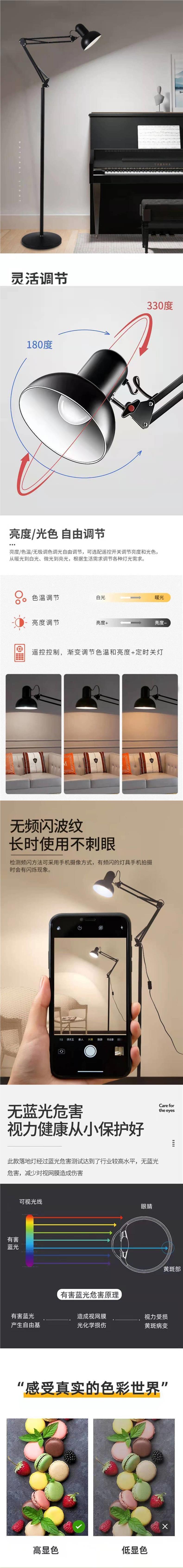 슈퍼 밝은 작업 램프 눈 보호 바닥 램프 레트로 수직 빛 고급 거실 침실 긴 팔 접이식 램프 스탠드 플러그인스토어 가기