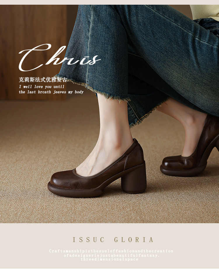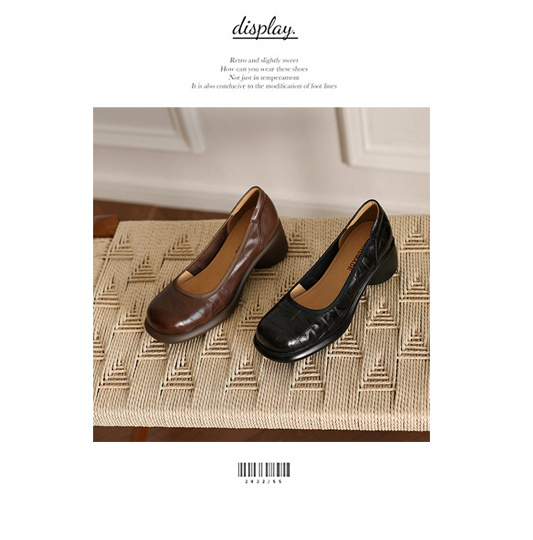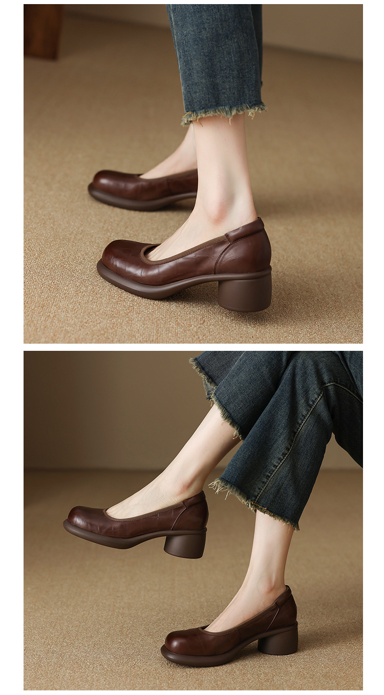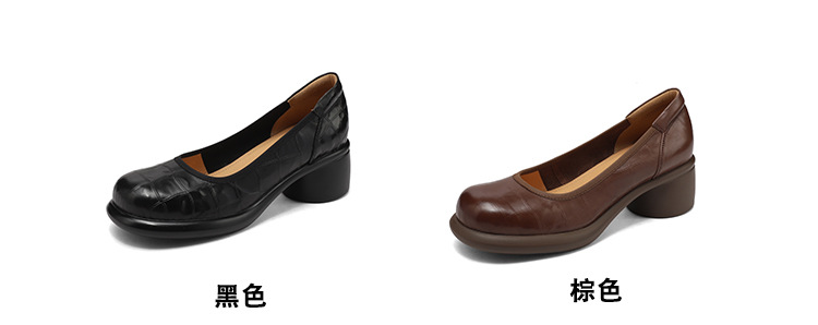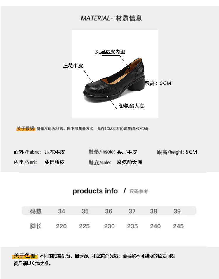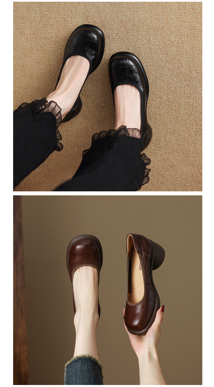 5cm ~ 두꺼운 바닥 둥근 머리 얕은 입 신발 여성의 봄과 가을 새로운 여성 신발 두꺼운 발 뒤꿈치 작은 가죽 신발 대외 무역 대형 신발 40 42스토어 가기