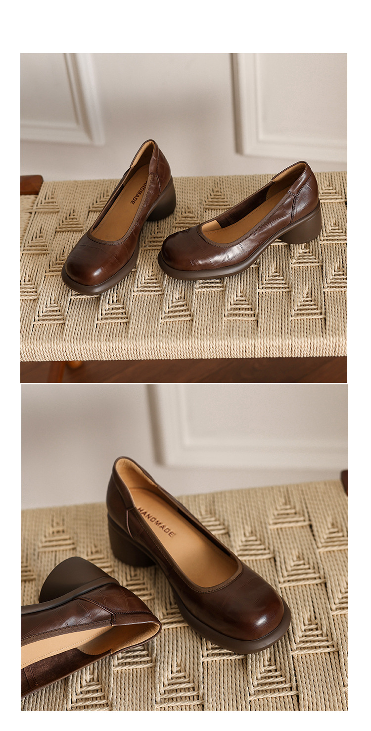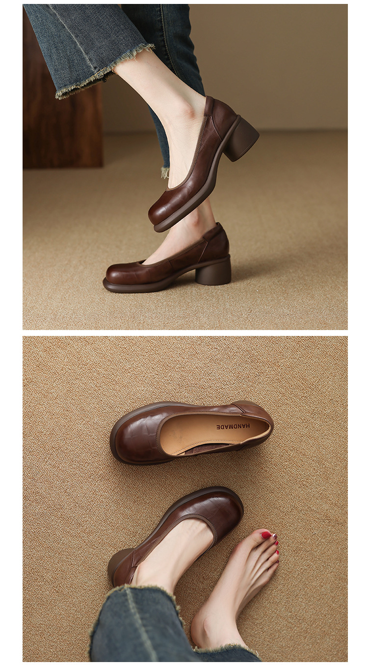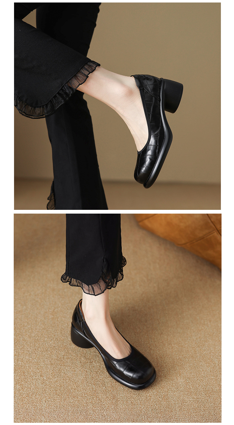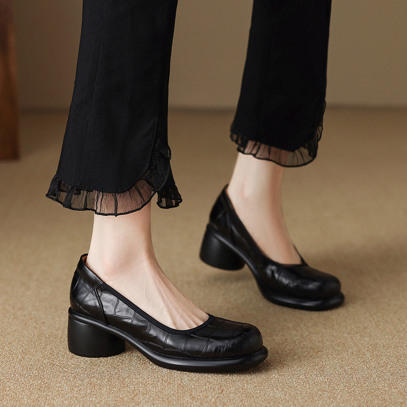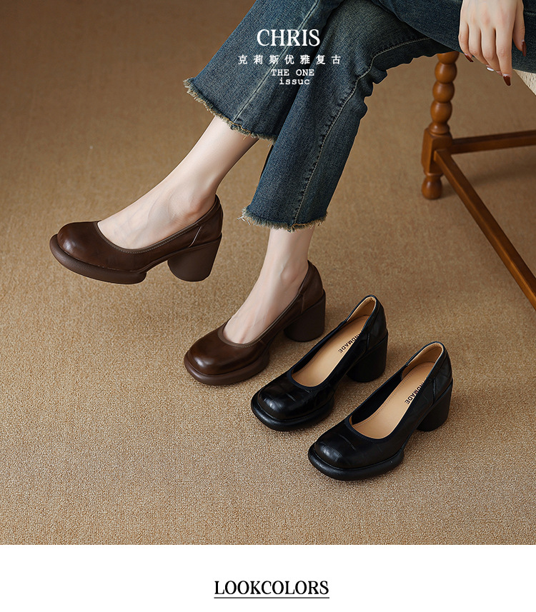 5cm ~ 두꺼운 바닥 둥근 머리 얕은 입 신발 여성의 봄과 가을 새로운 여성 신발 두꺼운 발 뒤꿈치 작은 가죽 신발 대외 무역 대형 신발 40 42스토어 가기