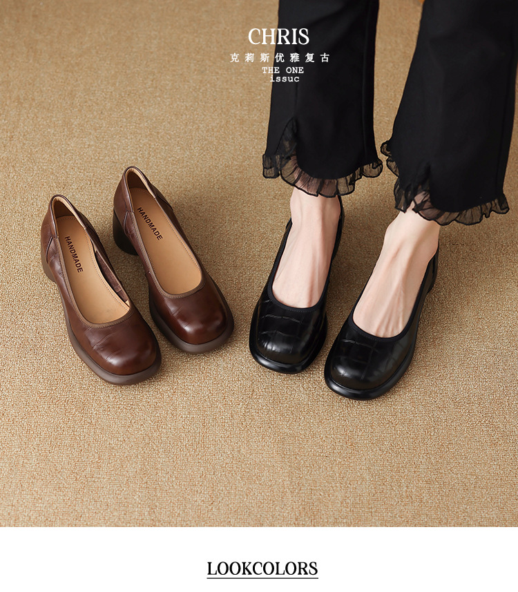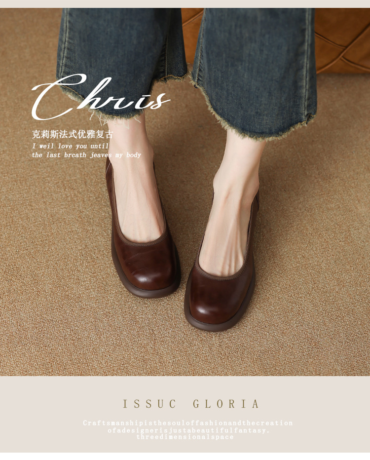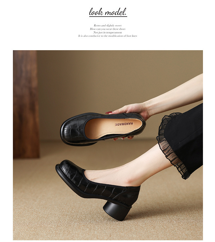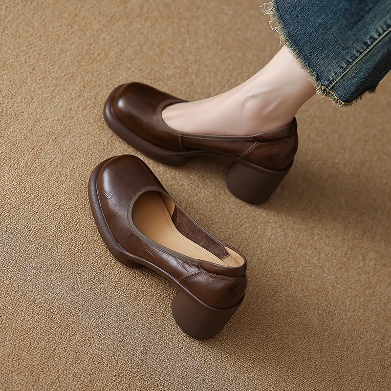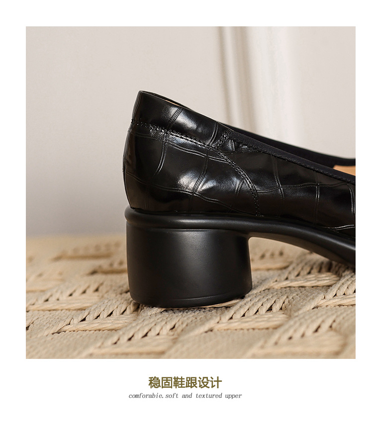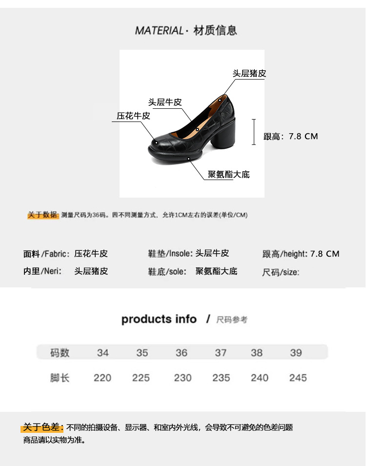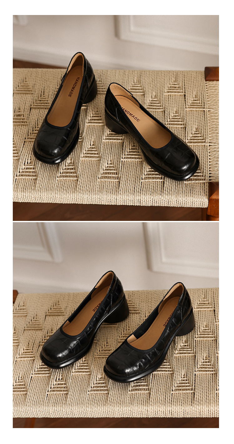 5cm ~ 두꺼운 바닥 둥근 머리 얕은 입 신발 여성의 봄과 가을 새로운 여성 신발 두꺼운 발 뒤꿈치 작은 가죽 신발 대외 무역 대형 신발 40 42스토어 가기