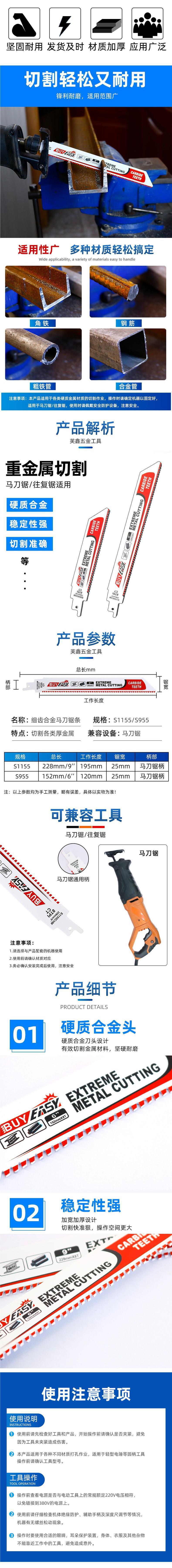 금속 절단 S1155CHM/S955CHM 세이버 톱날 자동차 왕복 톱날 내구성 225MM스토어 가기