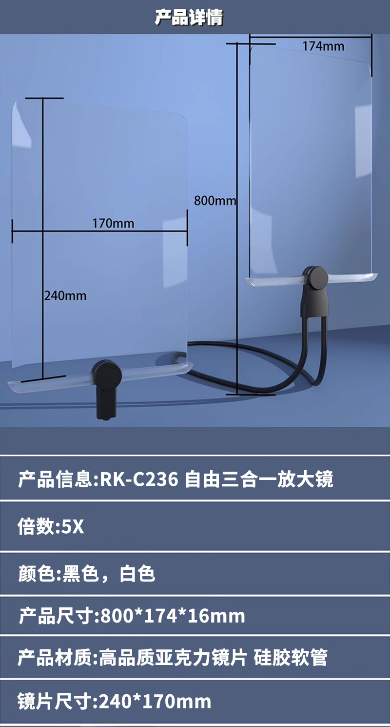 产品材质:亚克力镜片 硅胶软管