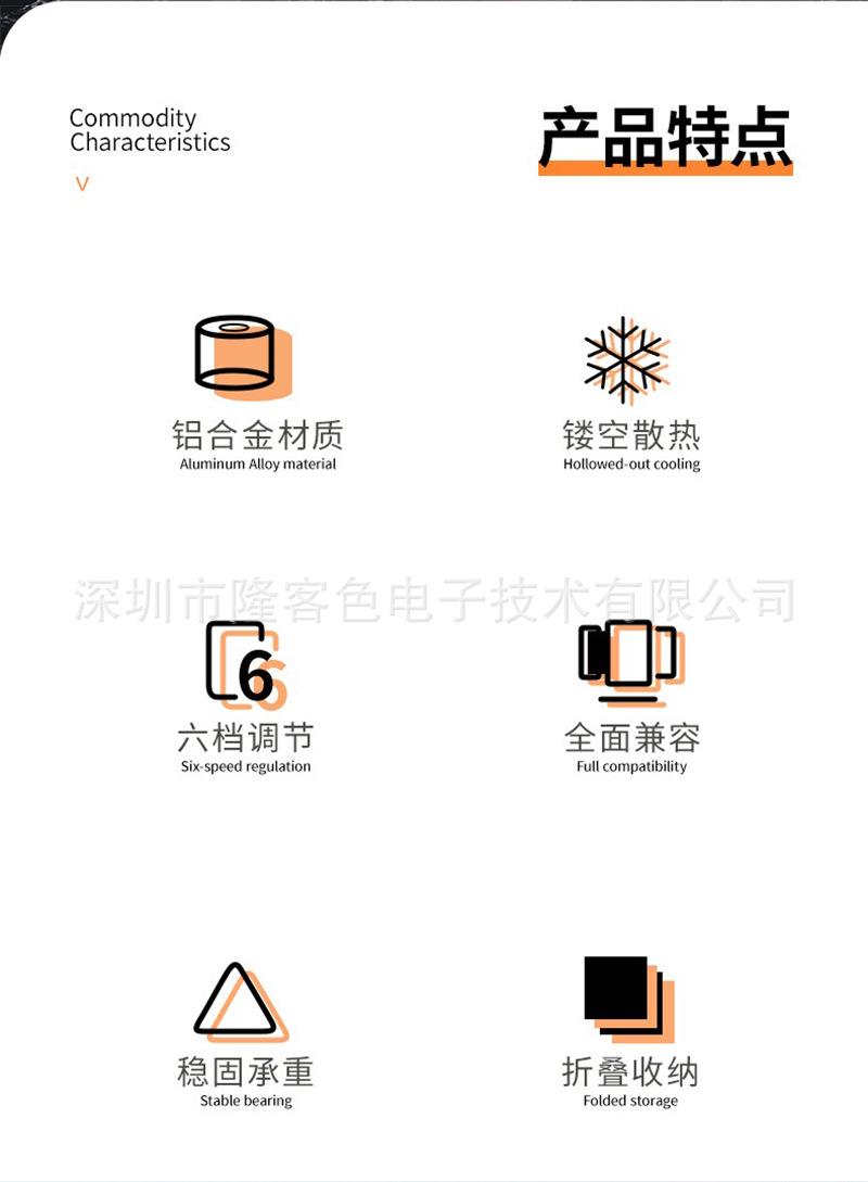 국경 간 방열 알루미늄 합금 노트북 컴퓨터 브래킷 6 단 조정 각도 높이 접이식 방열 브래킷