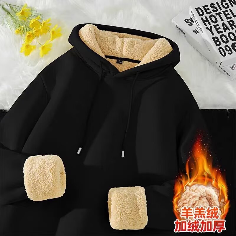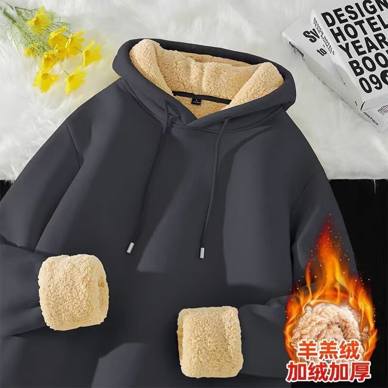 양가죽 후드 스웨트 셔츠 남자의 가을과 겨울 새 커플 옷 느슨한 플러스 사이즈 기모 두꺼운 따뜻한 스포츠 재킷