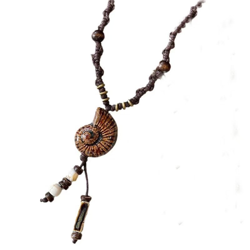 새로운 중국 스타일 세라믹 콘치 천연 석재 목걸이 여성용 빈티지 민족 스타일 목 액세서리 가을과 겨울 긴 모직 체인