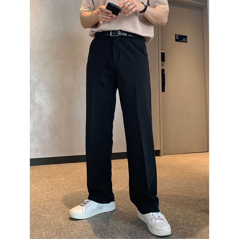 한국식 트렌디 캐주얼 스트레이트 바지 남자 봄과 여름 새로운 교수형 센스 고급 센스 좁은 크기의 세트 와이드 레그 바지스토어 가기
