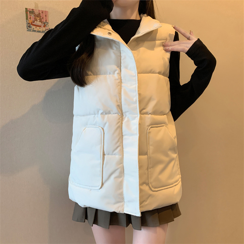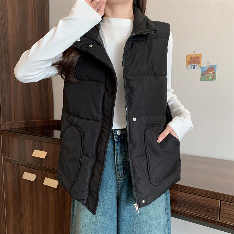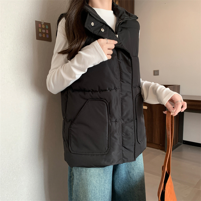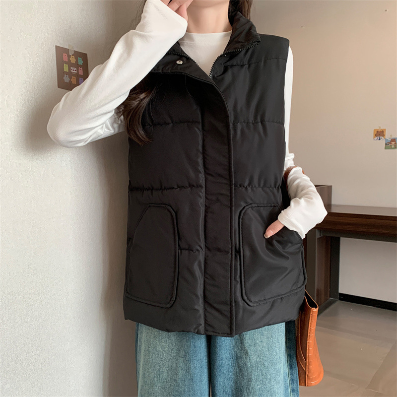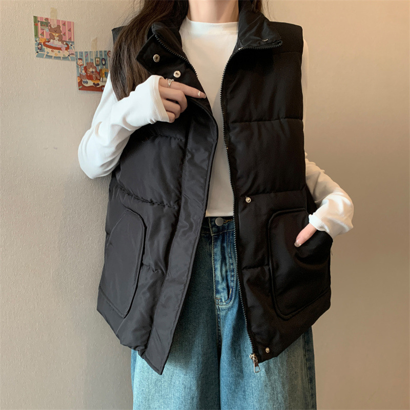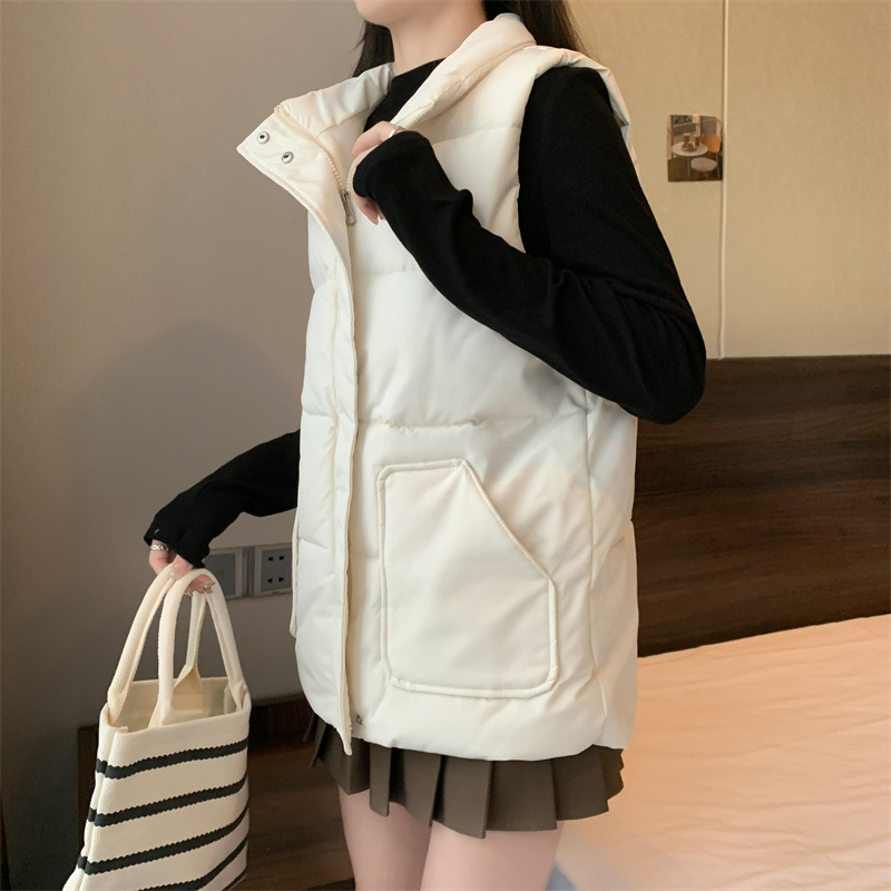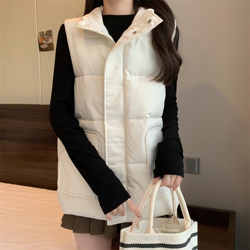가을 겨울 한국 스타일 겉옷 모방 패션 루즈 슬림 우아한 조끼 재킷 2024 학생면 패딩 재킷 여성 조끼스토어 가기