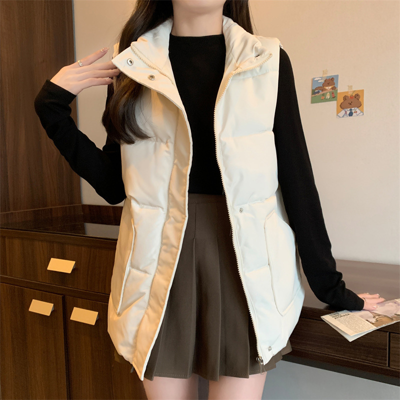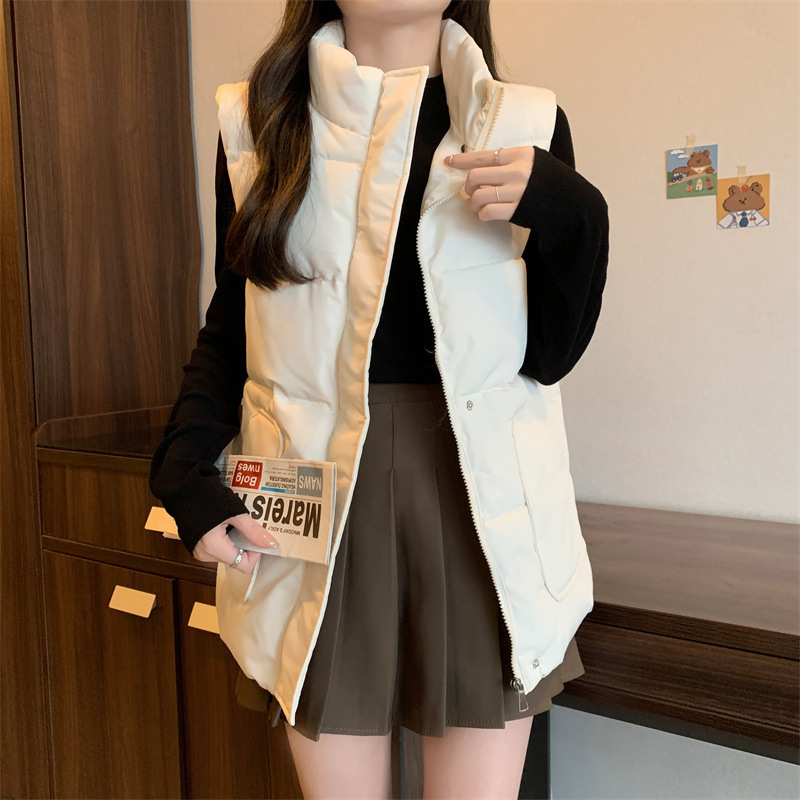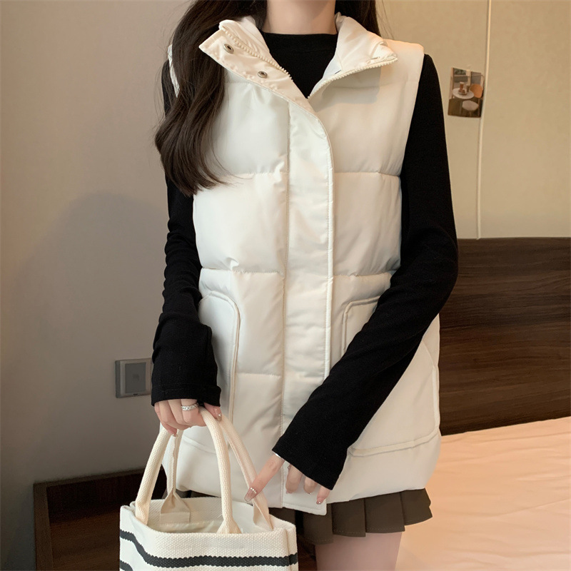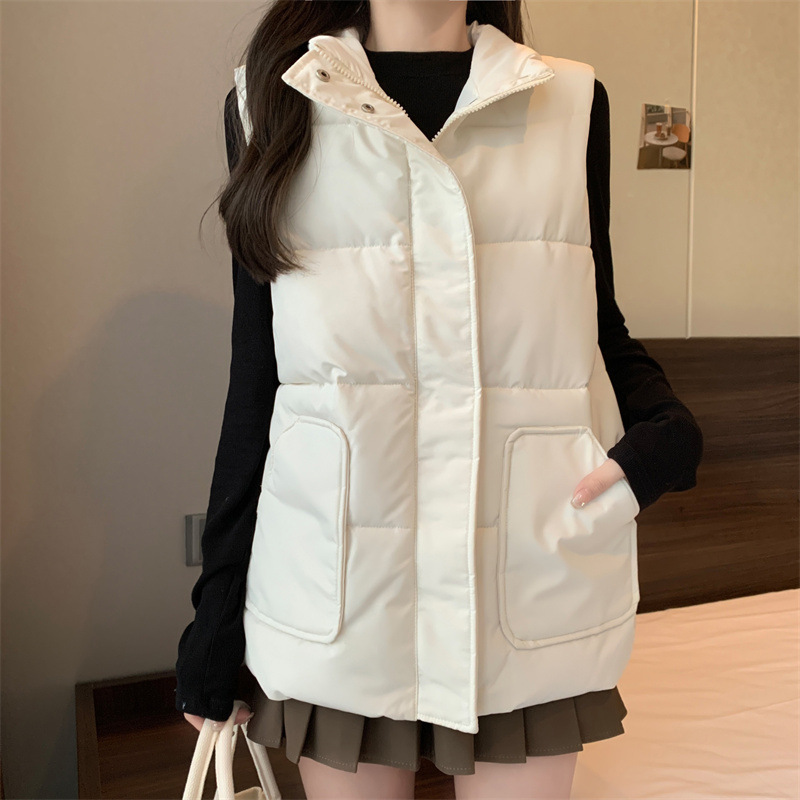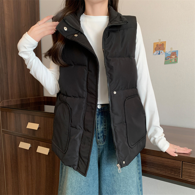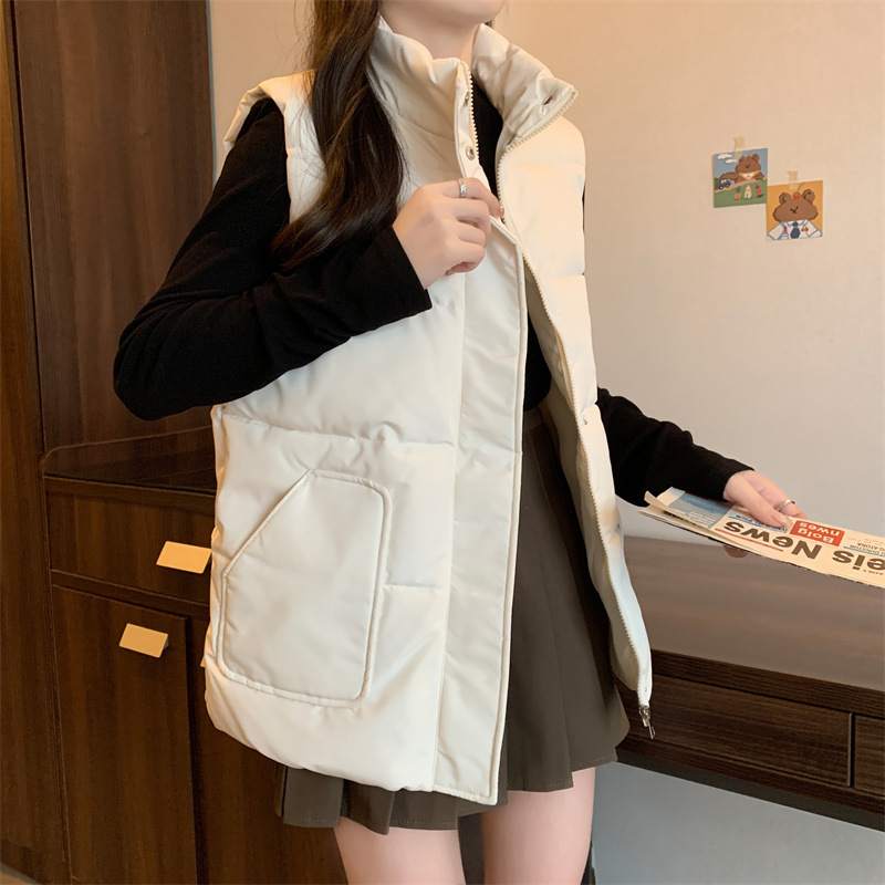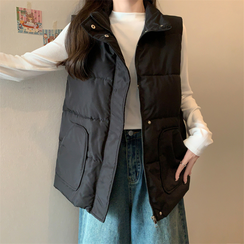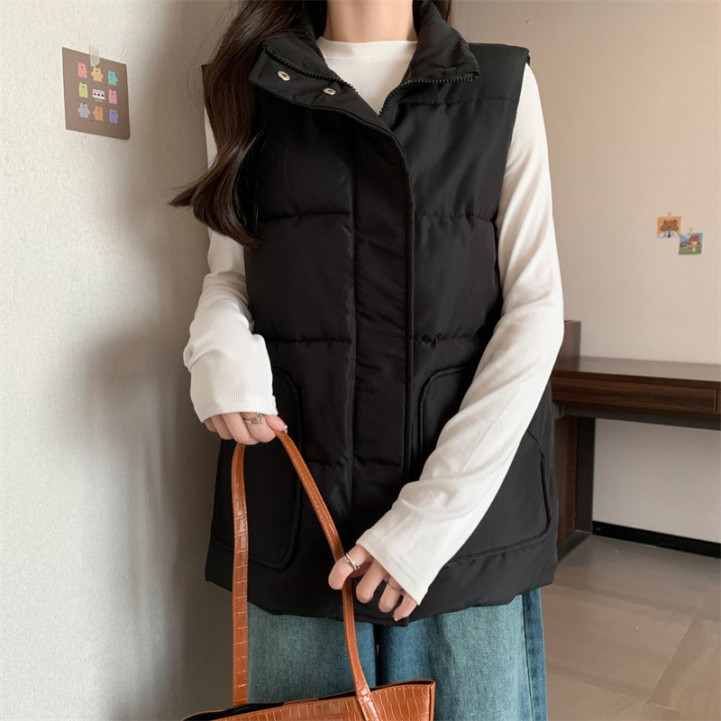 가을 겨울 한국 스타일 겉옷 모방 패션 루즈 슬림 우아한 조끼 재킷 2024 학생면 패딩 재킷 여성 조끼스토어 가기