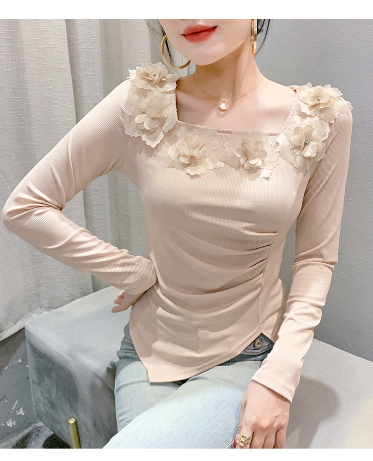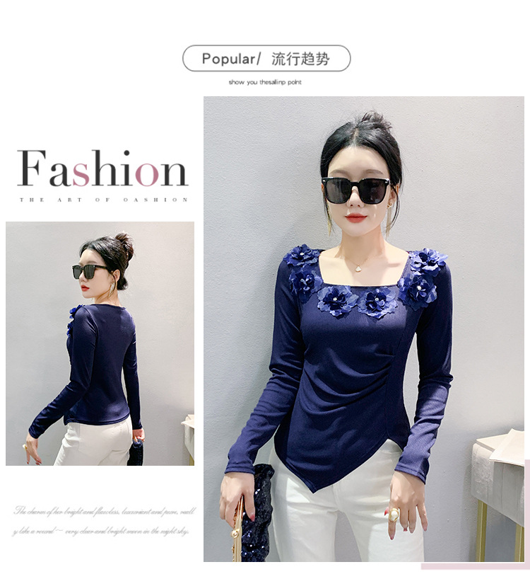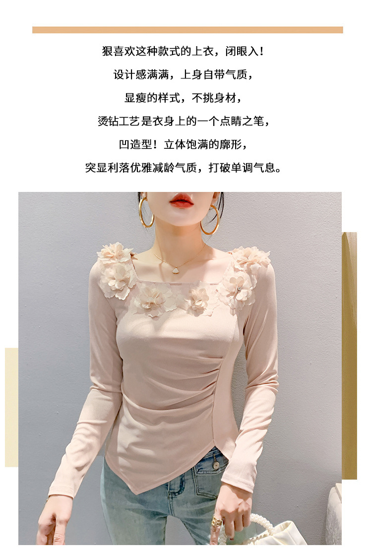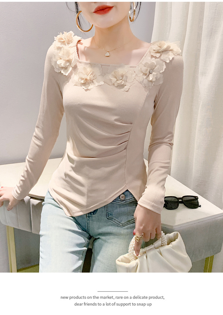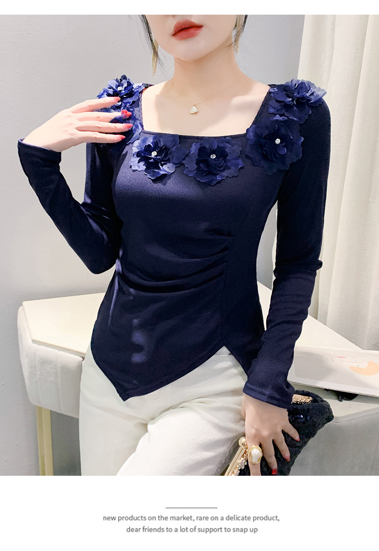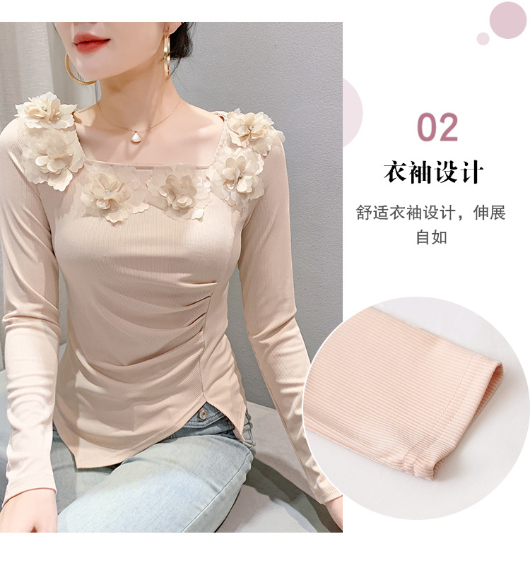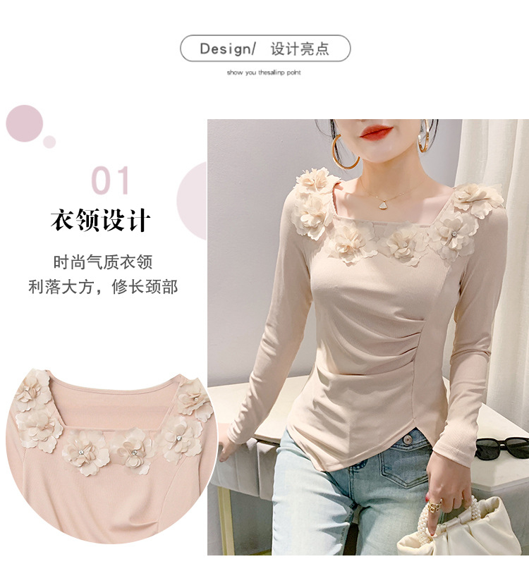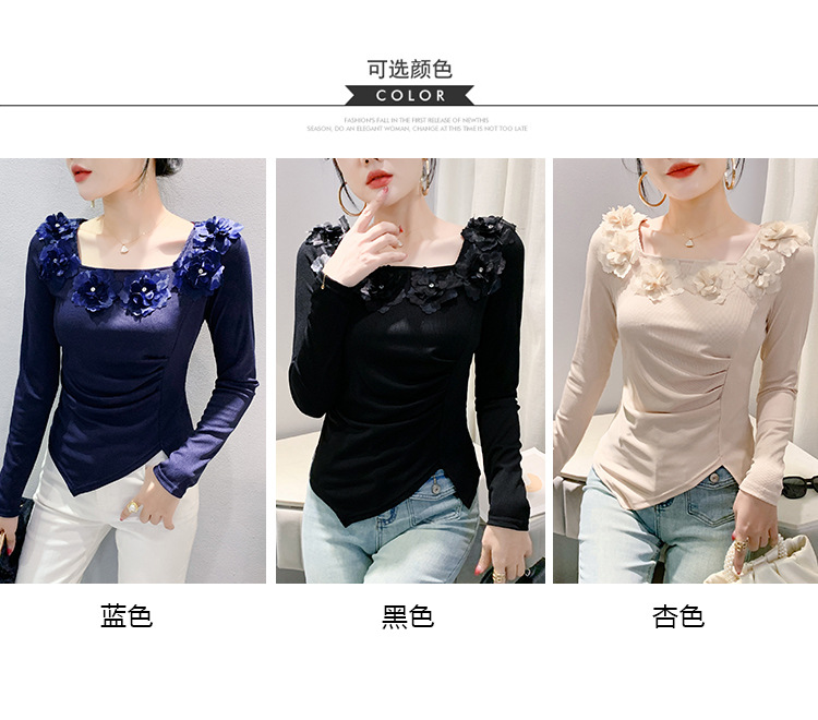 2024 새로운 스타일베이스 셔츠 우아한 꽃 세트 패션 우아한 광장 목 긴 소매 가을 빛 럭셔리 슬림 핏스토어 가기