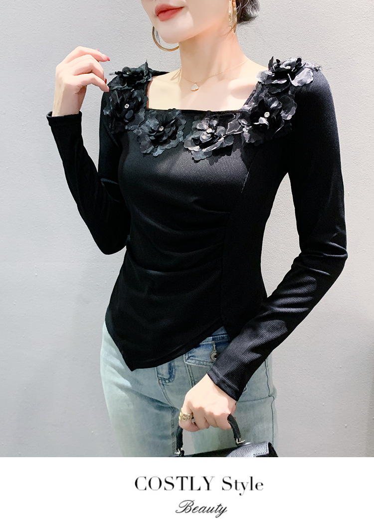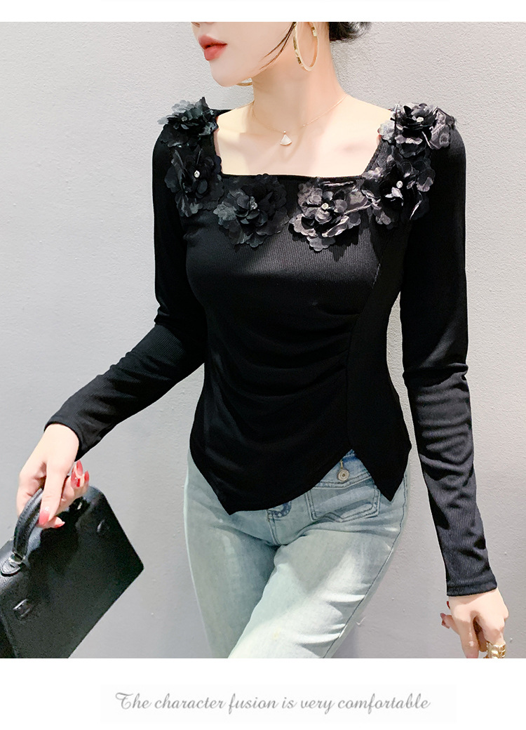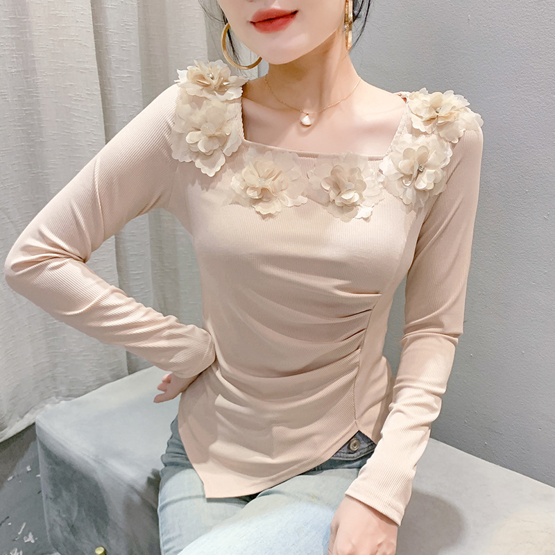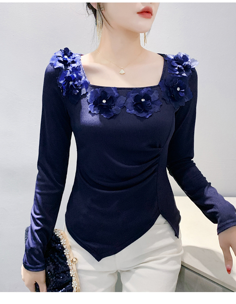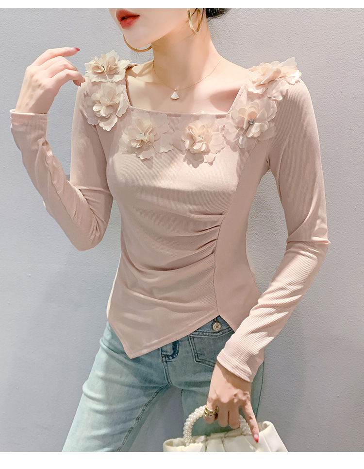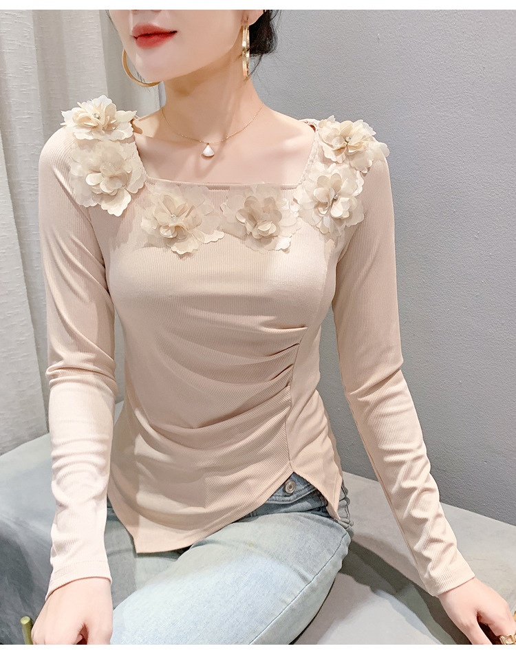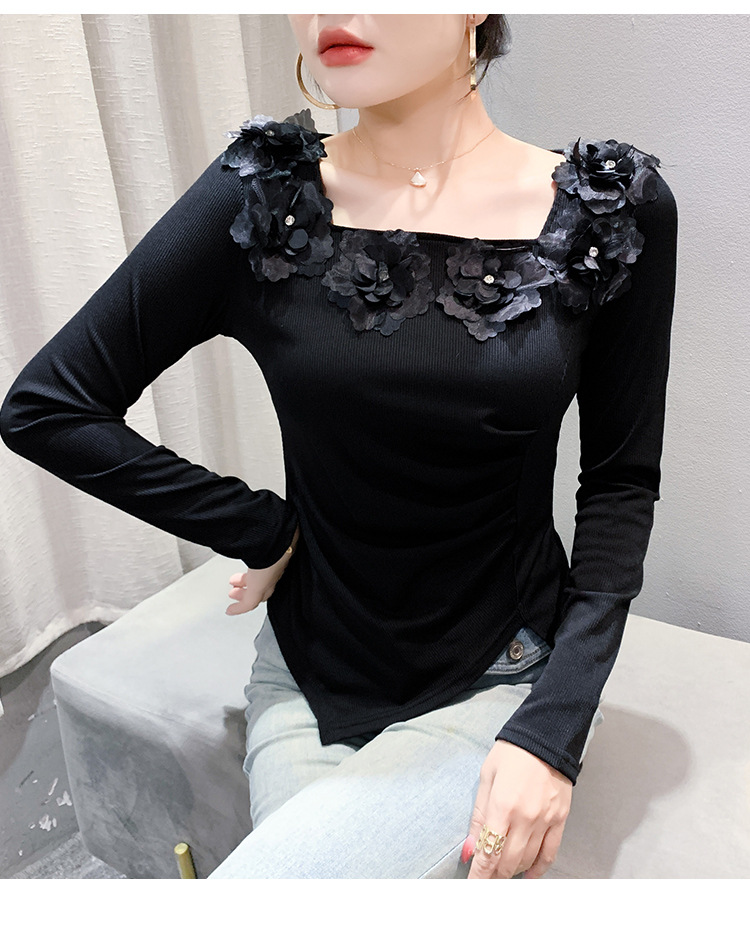 2024 새로운 스타일베이스 셔츠 우아한 꽃 세트 패션 우아한 광장 목 긴 소매 가을 빛 럭셔리 슬림 핏스토어 가기