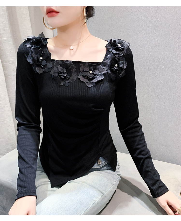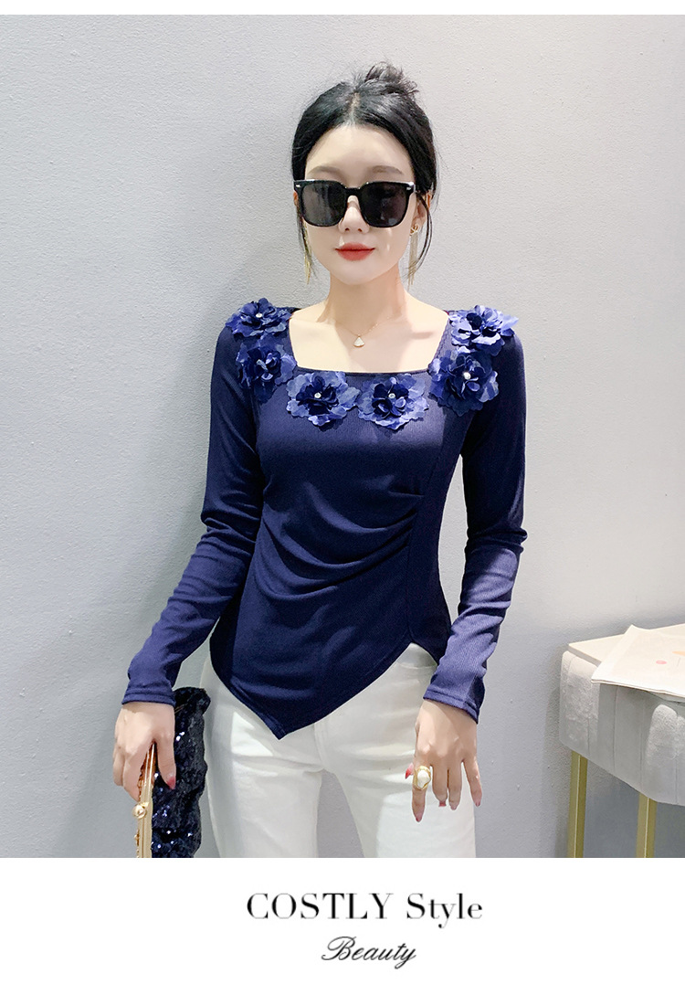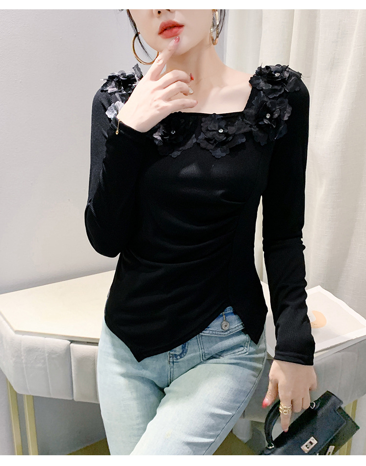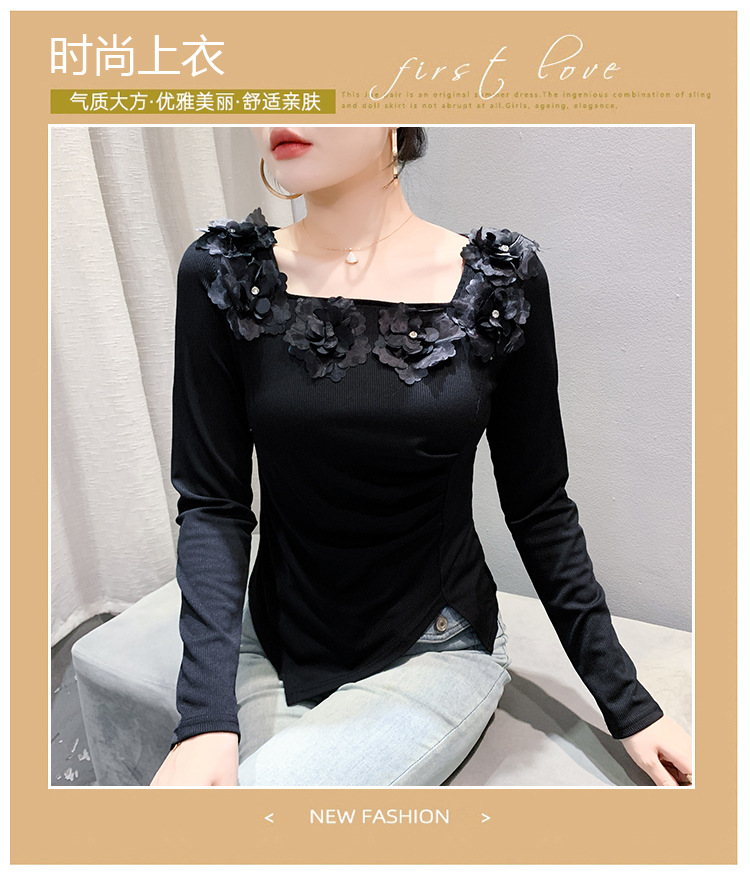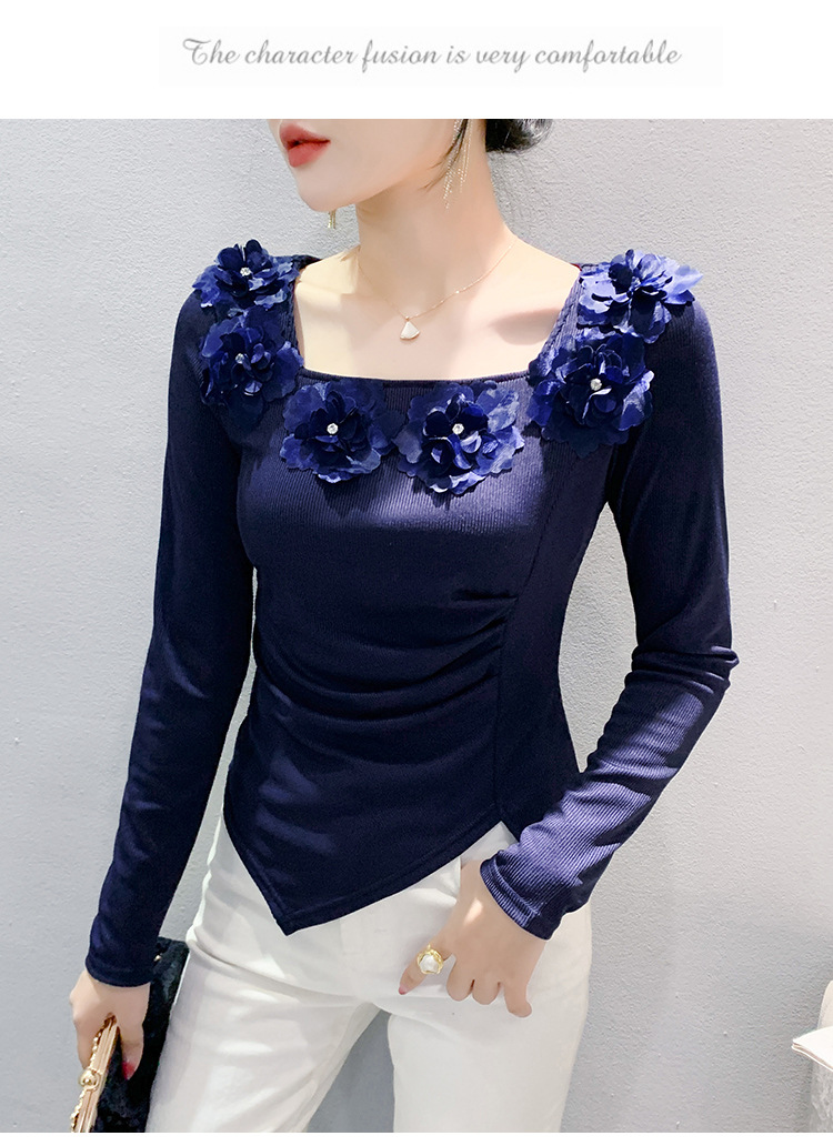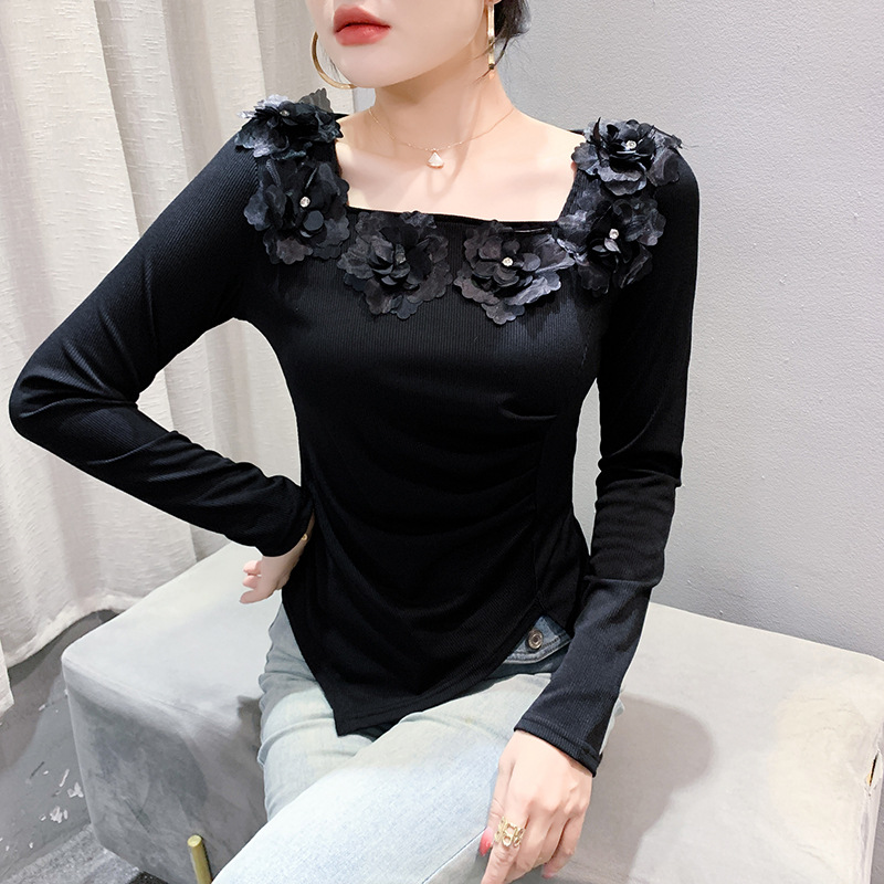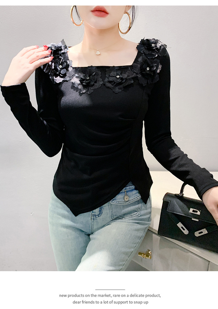 2024 새로운 스타일베이스 셔츠 우아한 꽃 세트 패션 우아한 광장 목 긴 소매 가을 빛 럭셔리 슬림 핏스토어 가기