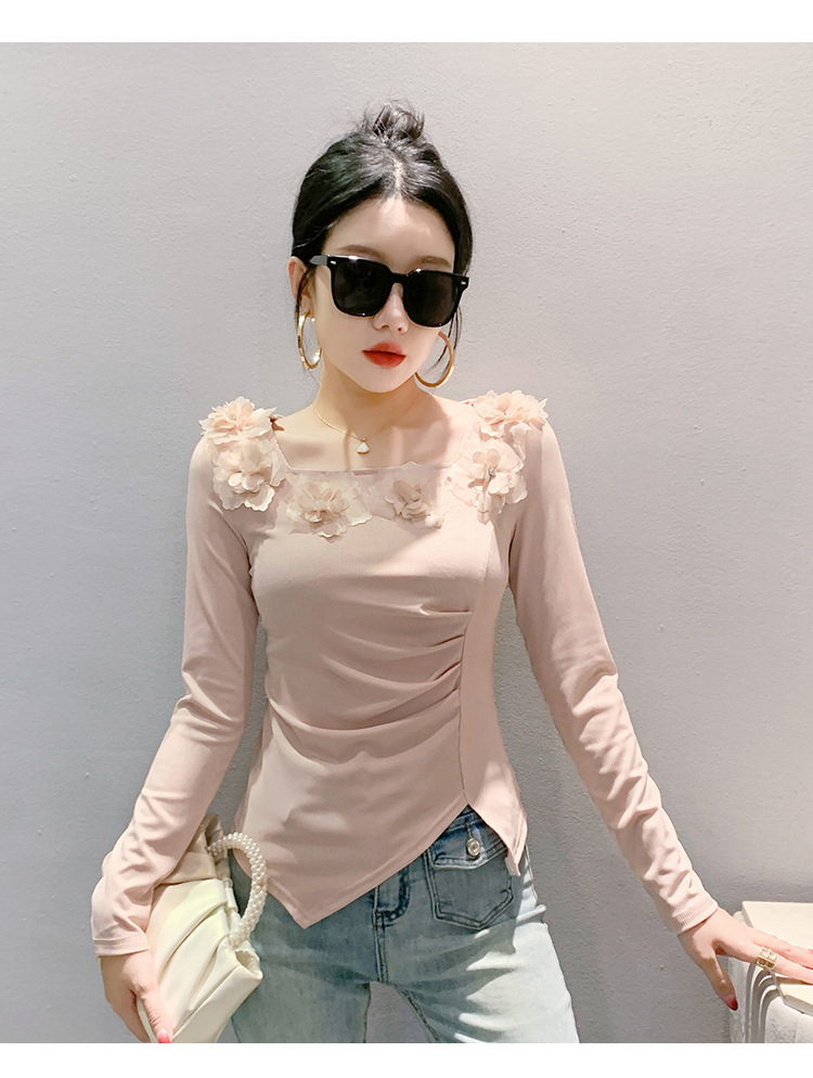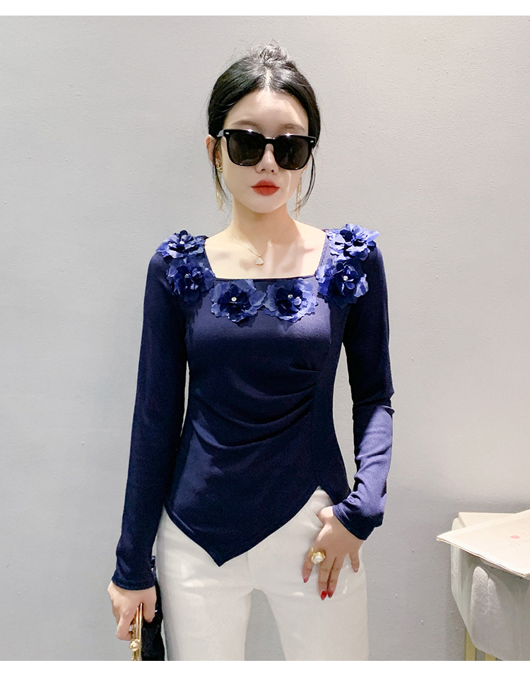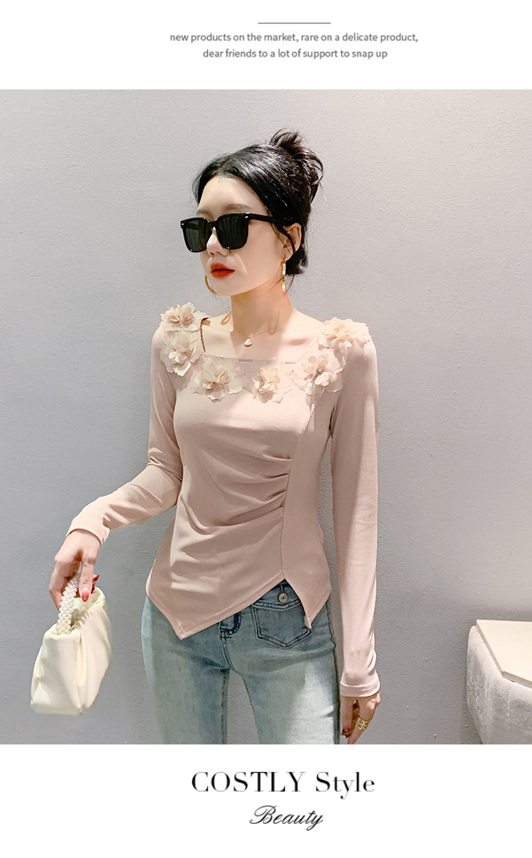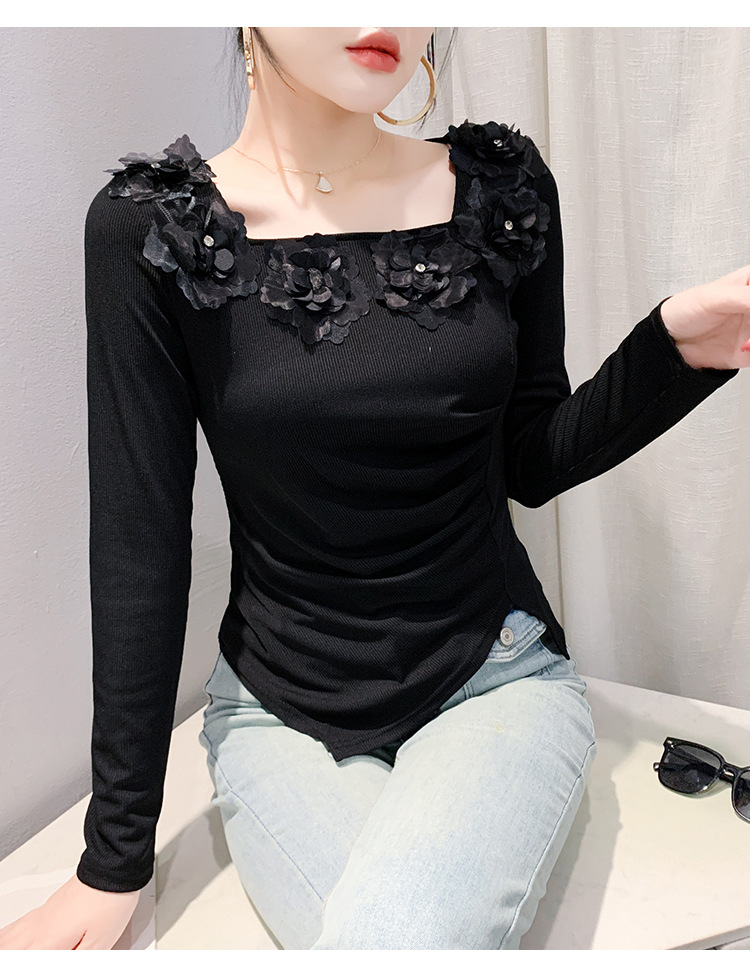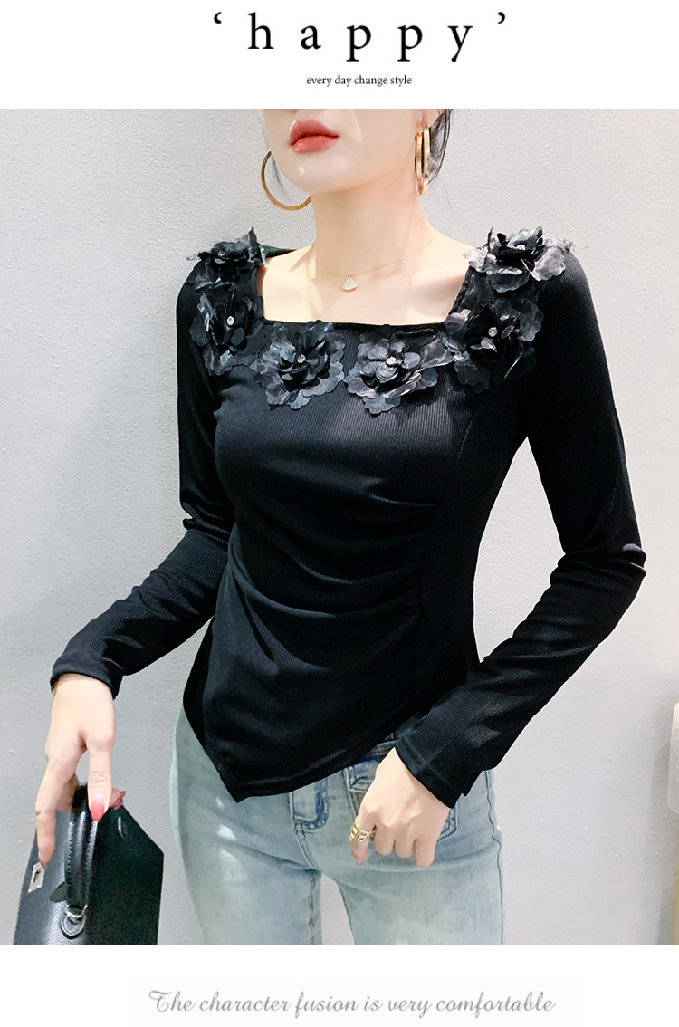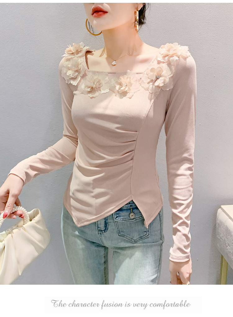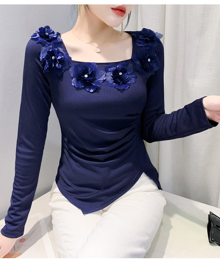 2024 새로운 스타일베이스 셔츠 우아한 꽃 세트 패션 우아한 광장 목 긴 소매 가을 빛 럭셔리 슬림 핏스토어 가기