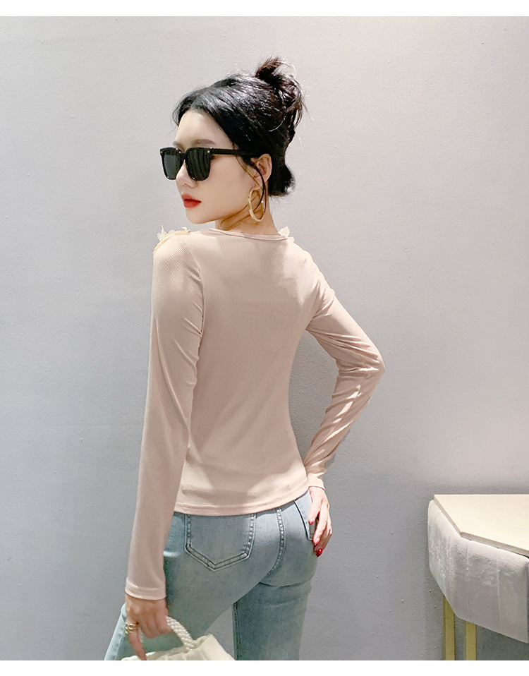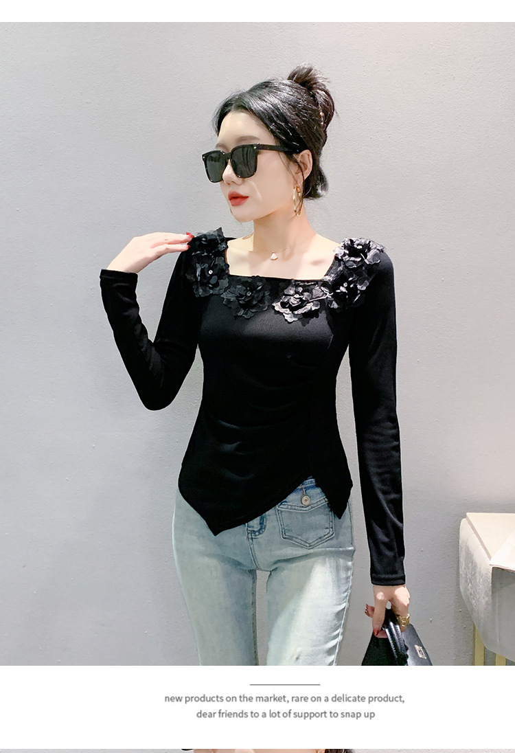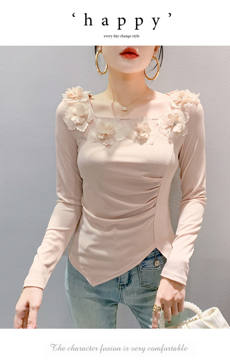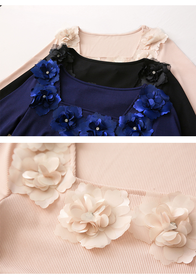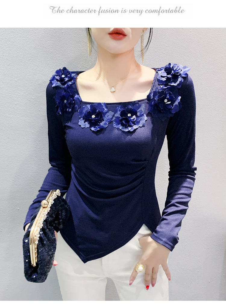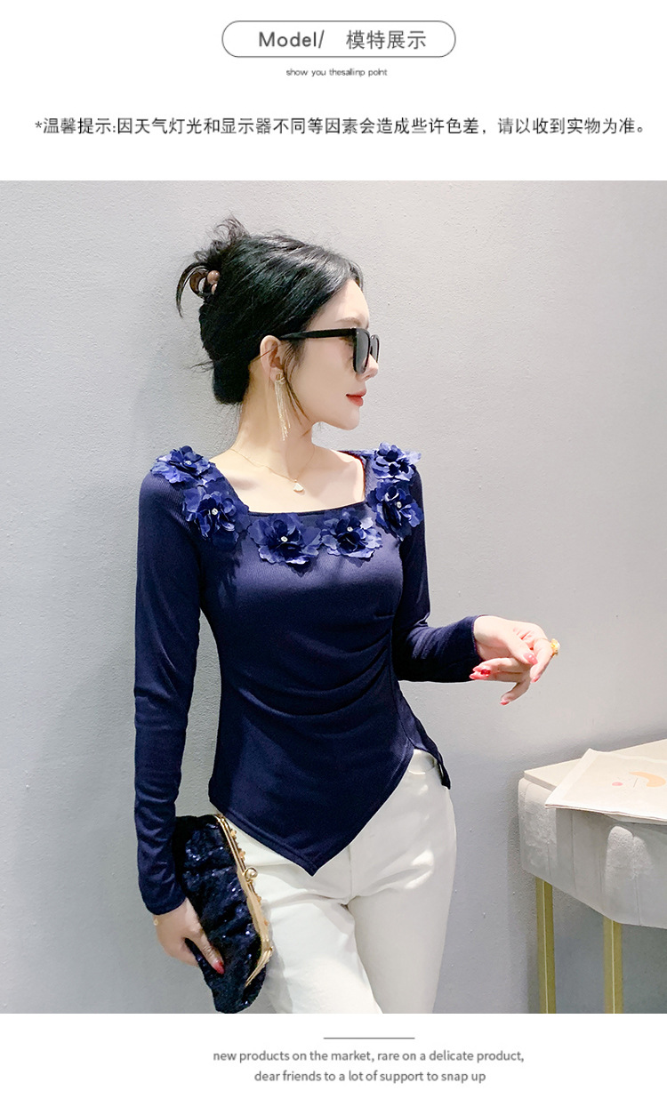 2024 새로운 스타일베이스 셔츠 우아한 꽃 세트 패션 우아한 광장 목 긴 소매 가을 빛 럭셔리 슬림 핏스토어 가기