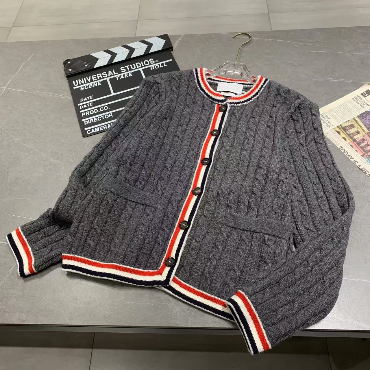 TB 대학 스타일 대비 색상 둥근 목 대마 패턴 니트 카디건 여성 서양 스타일 스키니 에이지 감소 스웨터 코트 가을과 겨울 새로운스토어 가기