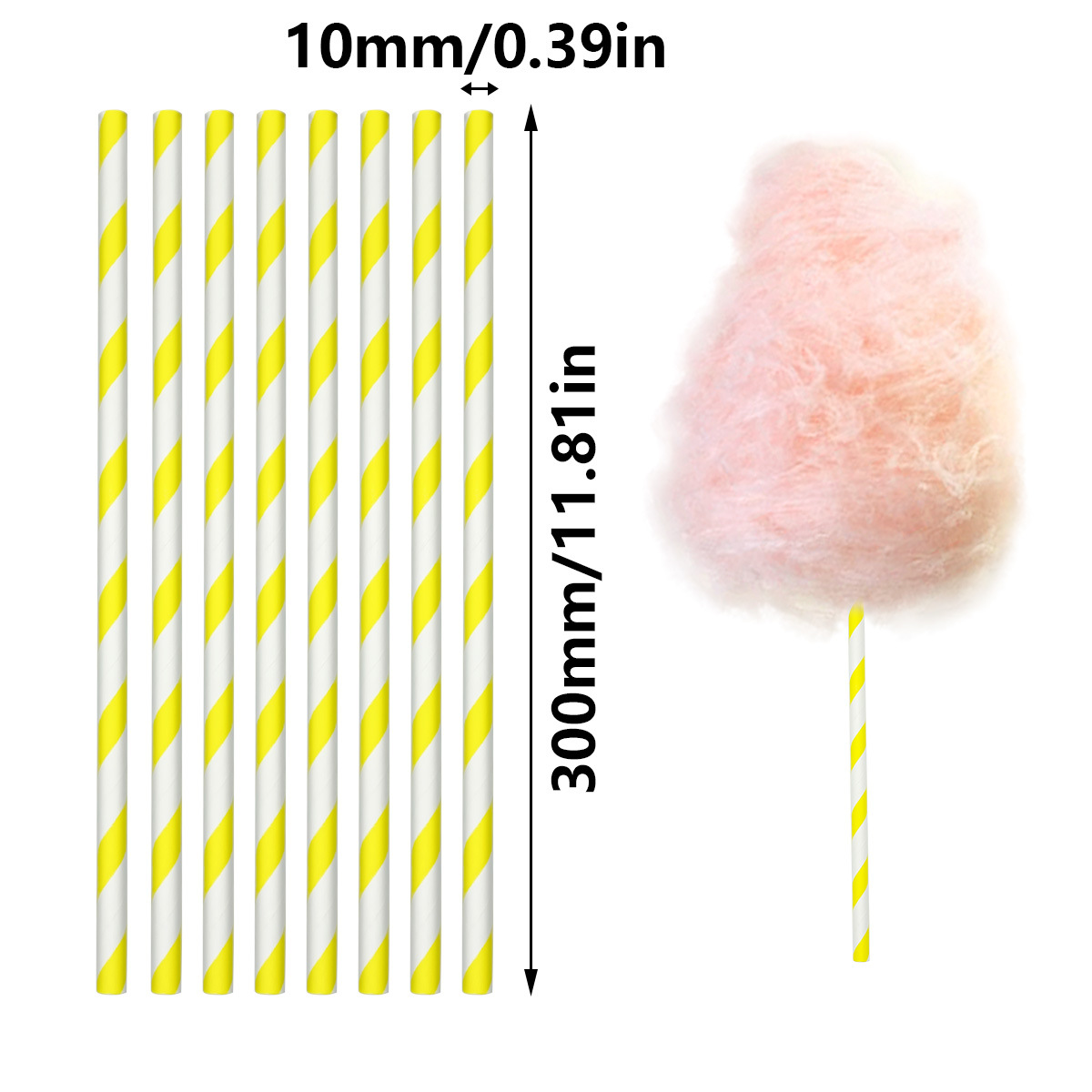 코튼 캔디 기계 특수 솜사탕 컬러 스틱 10*300MM 옐로우 컬러 바 어린이 특수 스틱스토어 가기