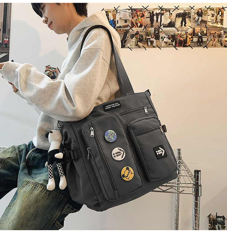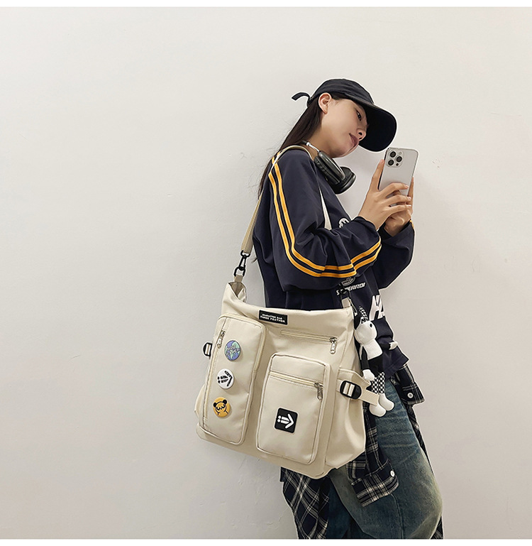 고등학교 학생을위한 책 가방 토트 미라 가방을 들고 올 매치 멀티 포켓 크로스 바디 백 남녀 보충 수업 싱글 숄더 백