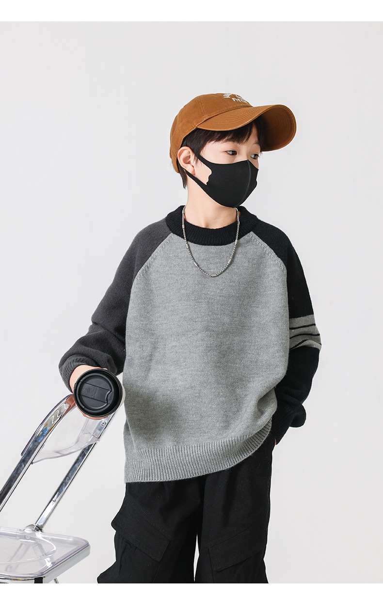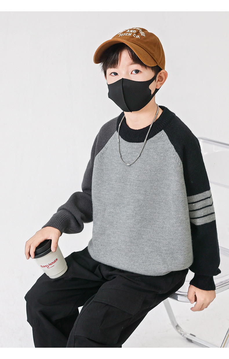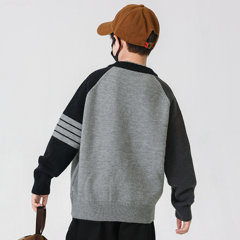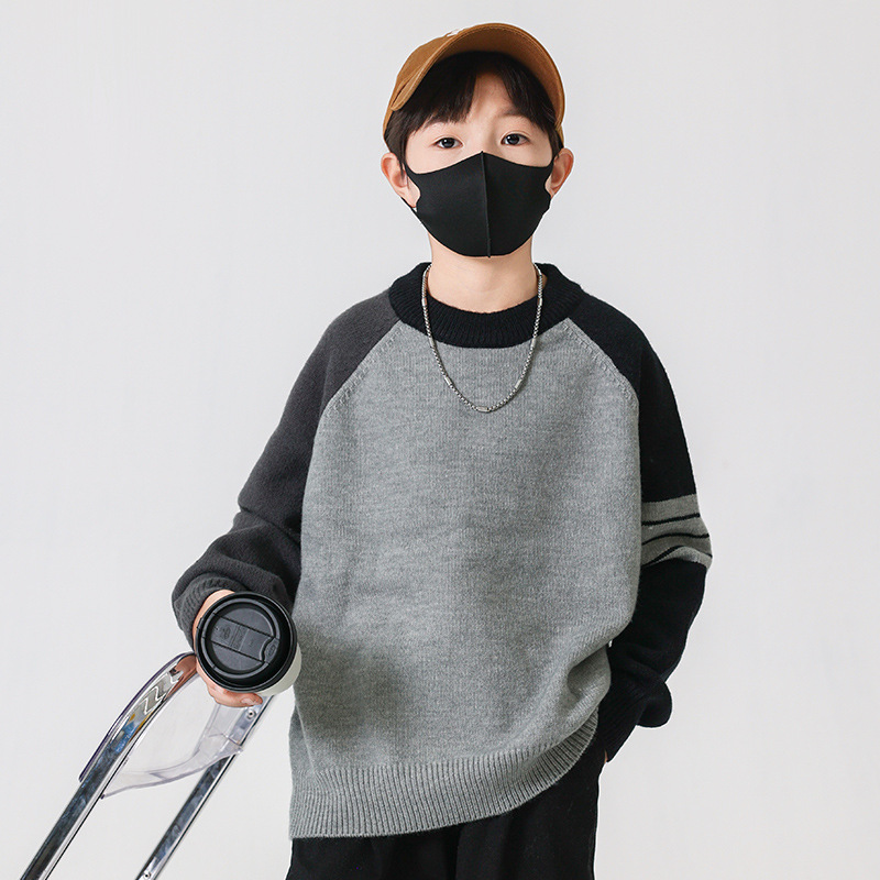 겨울 중다 소년 스웨터 겨울 새 아동복 어린이 소년의 독특한 크루 넥 풀오버 올 매치 스웨터 트렌디 브랜드