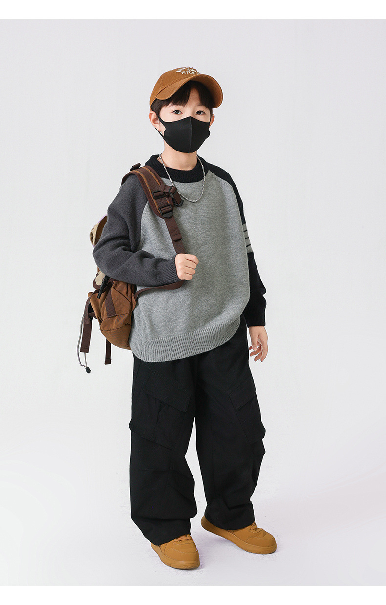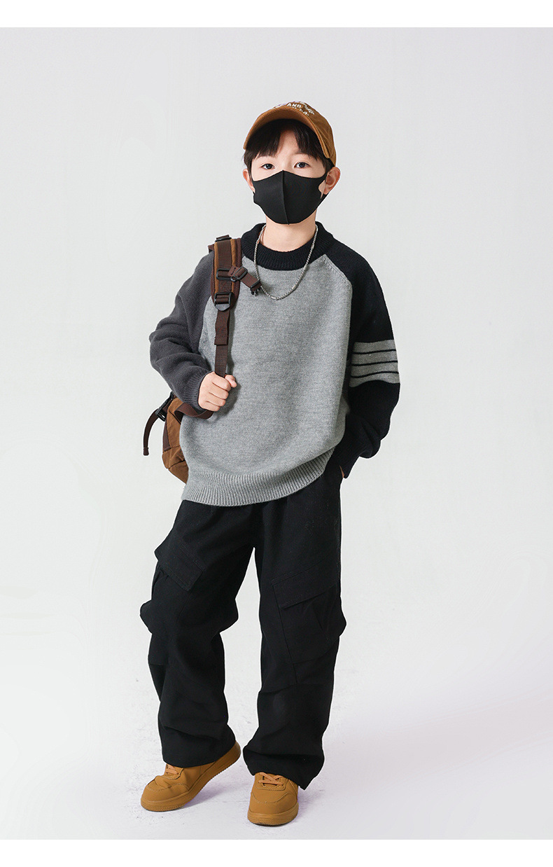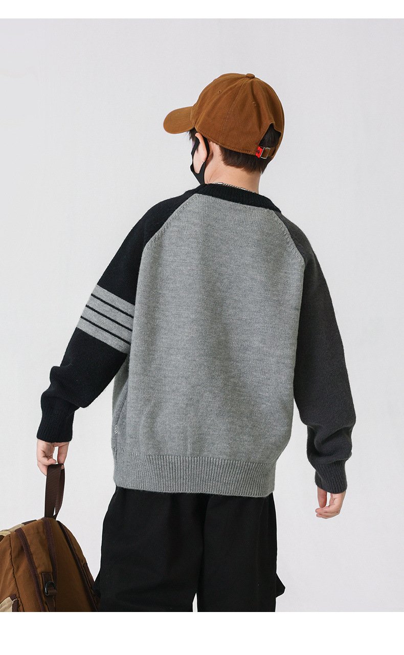 겨울 중다 소년 스웨터 겨울 새 아동복 어린이 소년의 독특한 크루 넥 풀오버 올 매치 스웨터 트렌디 브랜드