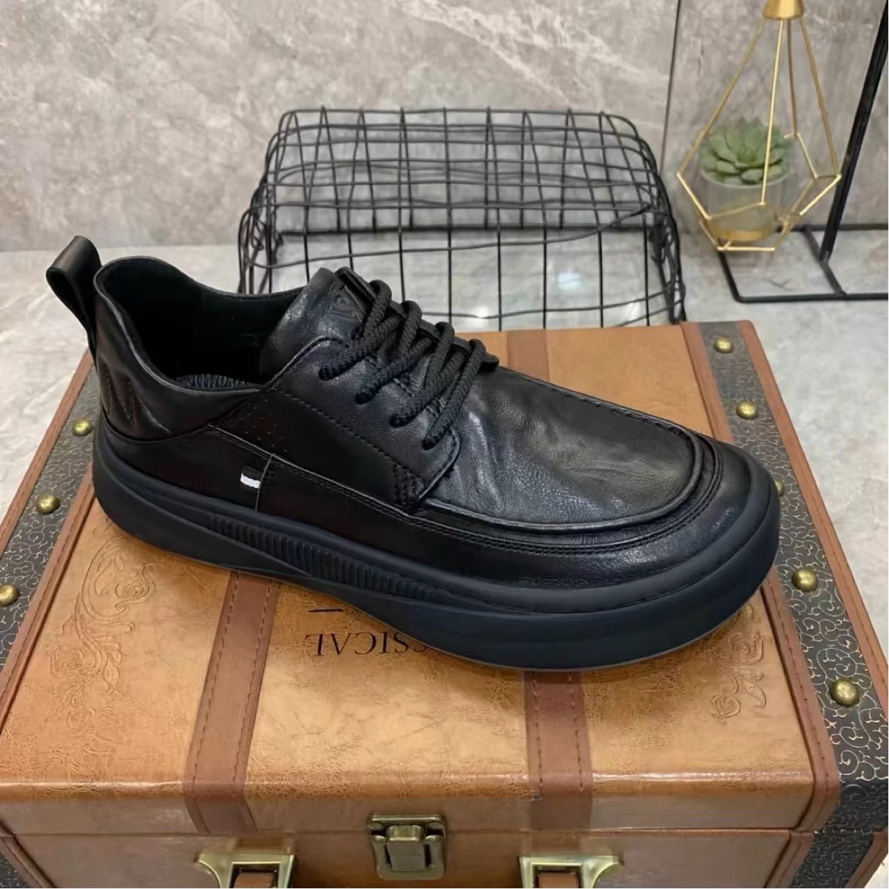 남성 캐주얼 가죽 신발 2024 캐주얼 풀 가죽 레트로 트렌디 스니커즈 부드러운 밑창 가볍고 통기성 좋은 남성 신발 편안함스토어 가기