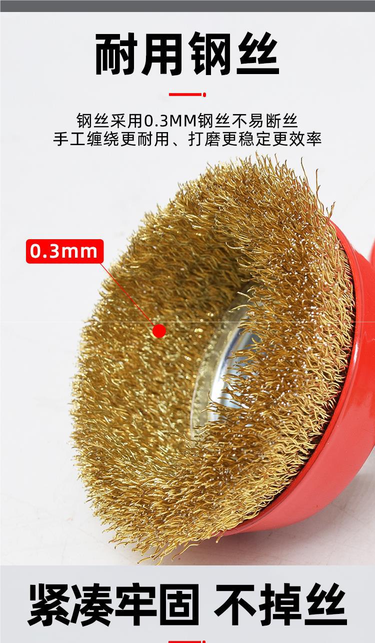 그릇 유형 스틸 와이어 휠 스틸 와이어 브러시 금속 그라인딩 녹 제거 연마 휠 앵글 그라인더 100 유형 스틸 브러시 전기 그라인더스토어 가기