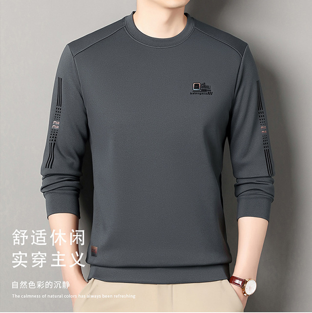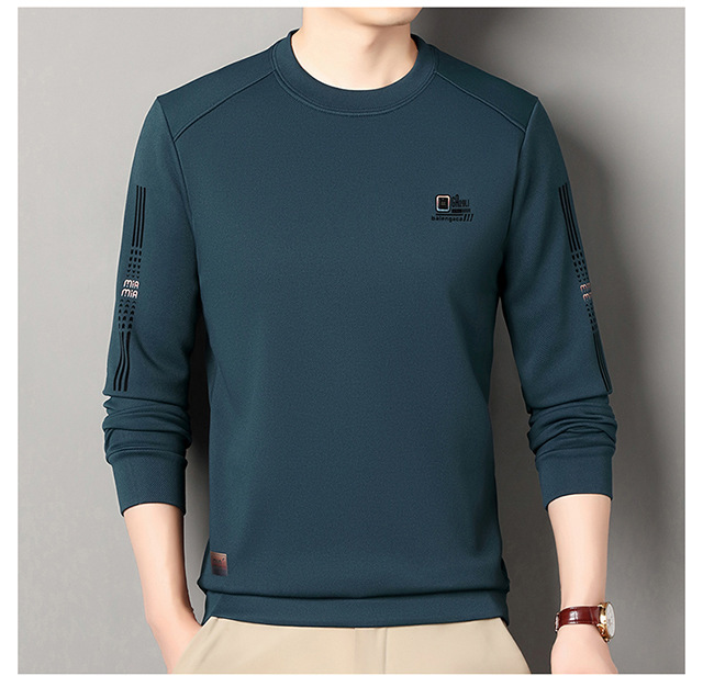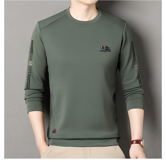 가을과 겨울 새로운 기모 두꺼운 무거운 공예 남성 스웨터 패션 트렌드 둥근 목 티셔츠베이스 셔츠 세대