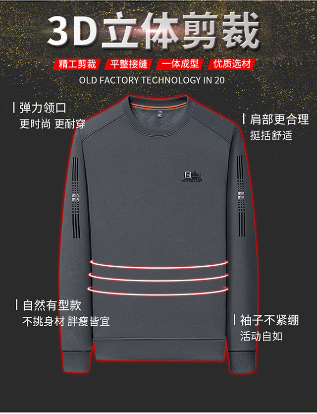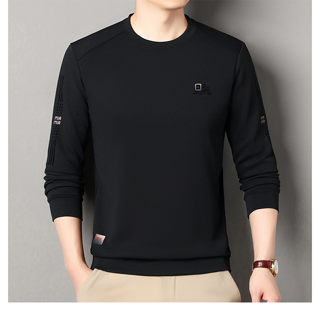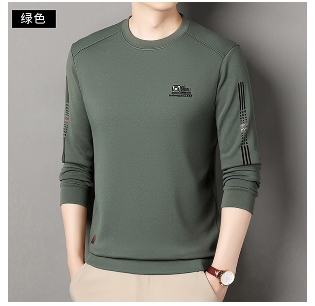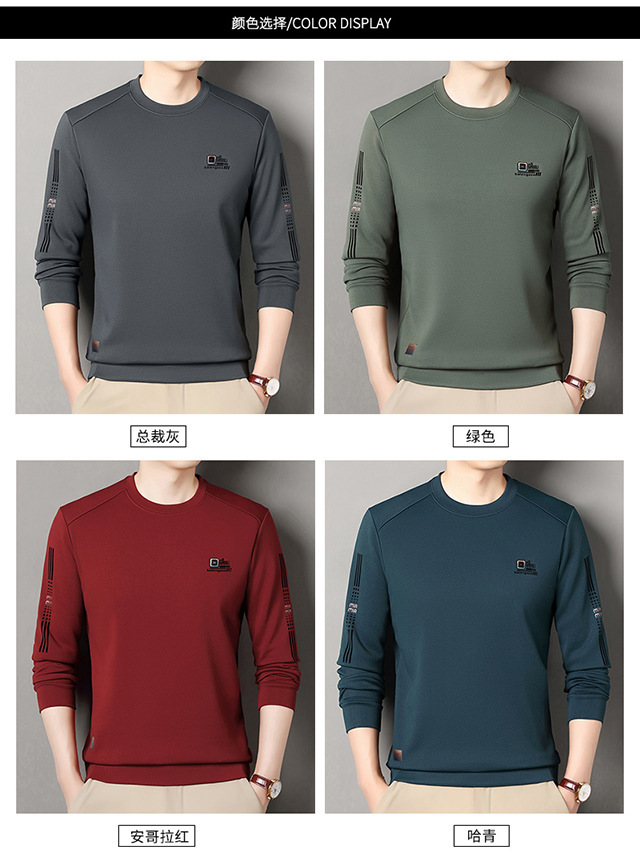 秋冬季新款加绒加厚重工艺男士卫衣时尚潮流圆领T恤打底衫代发