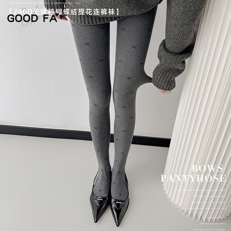2025 가을 겨울 여성용 레깅스 80D240D 심리스 원라인 디자인 물방울 무늬 리본 레깅스 팬티스타킹스토어 가기