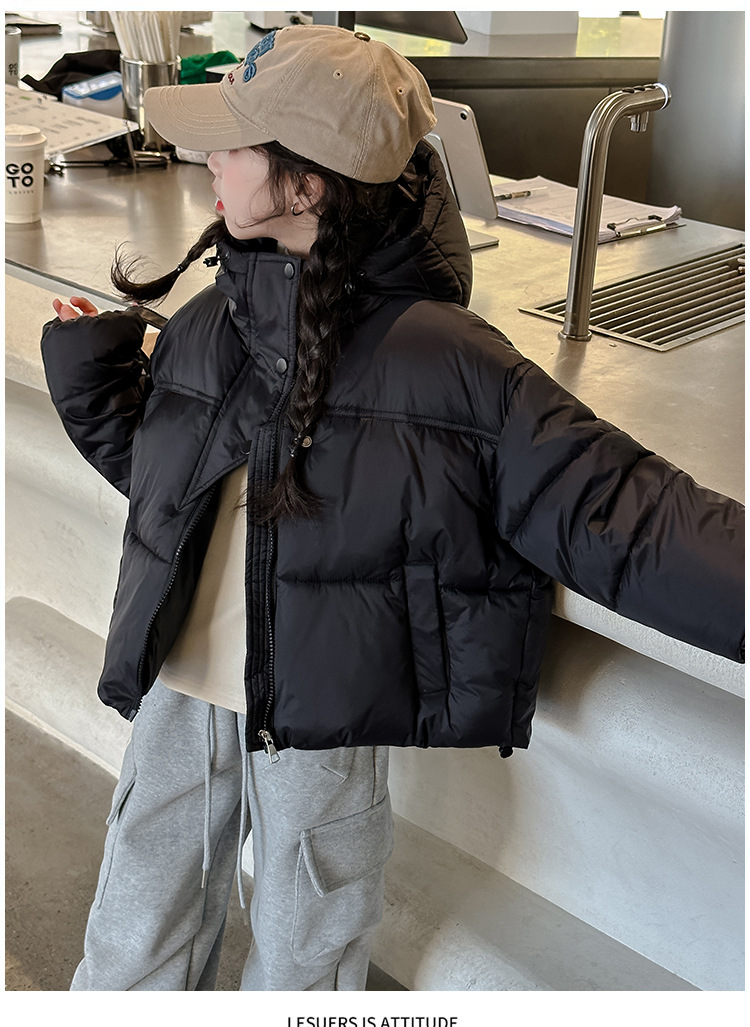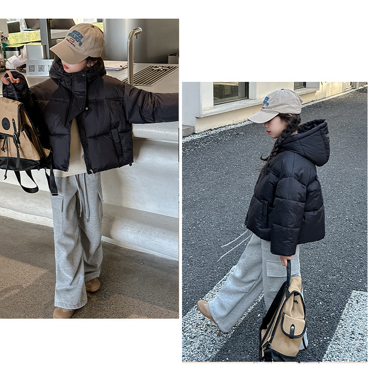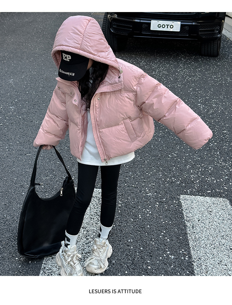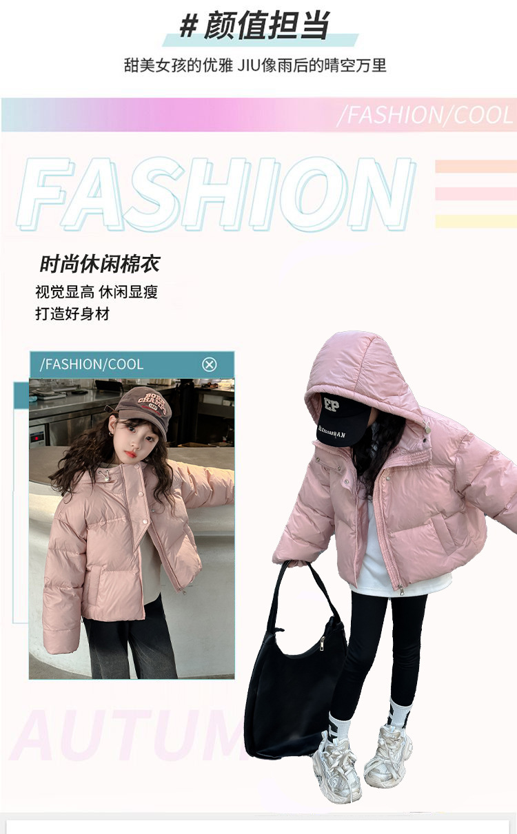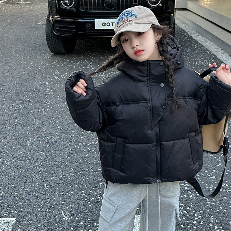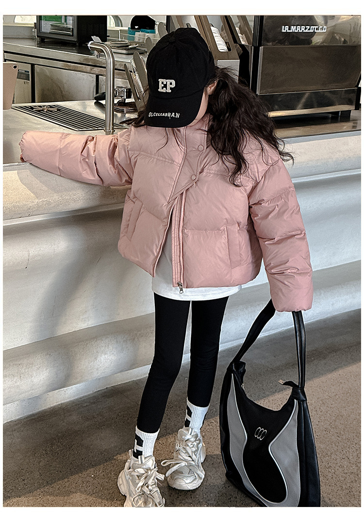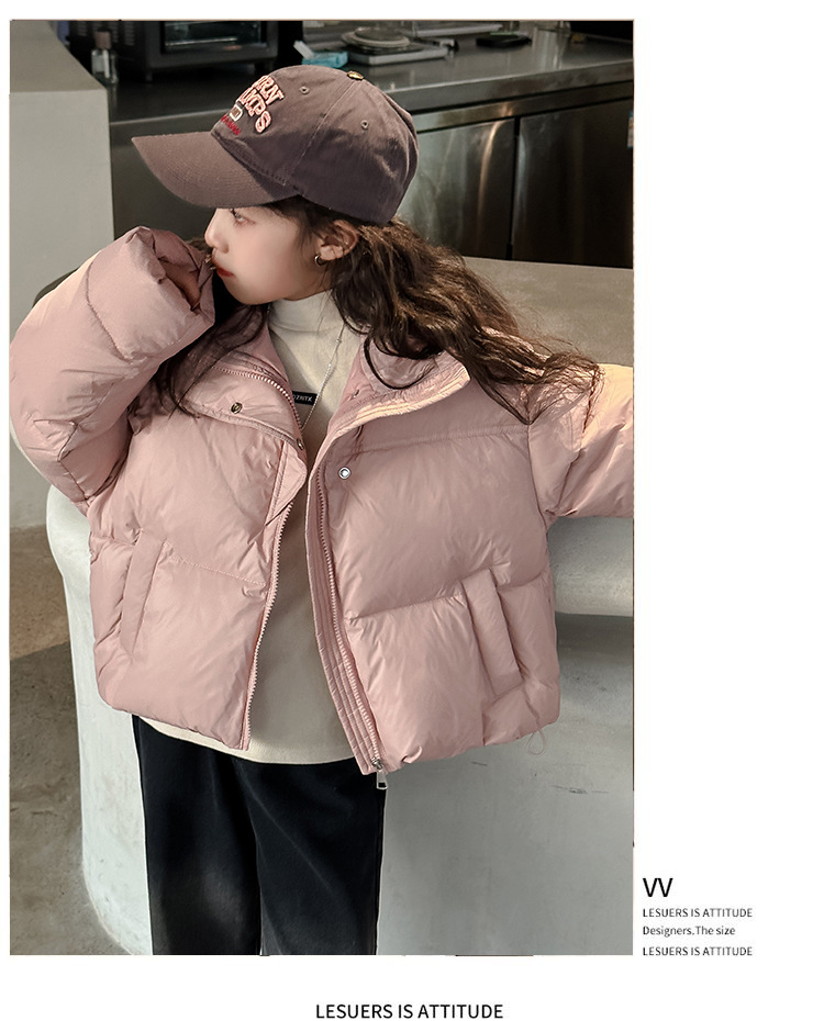 여아용 빵옷, 솜털 면 코트, 2025 겨울 신상품, 아동용 중대형 면 패딩 재킷, 두꺼운 짧은 면 코트스토어 가기