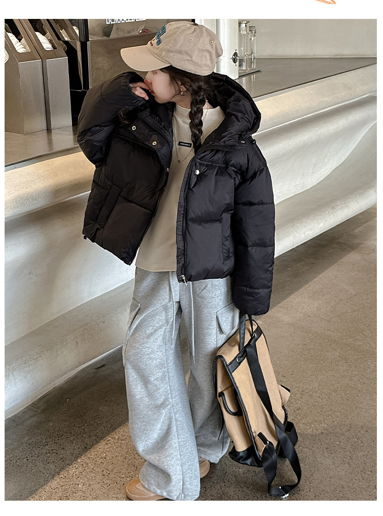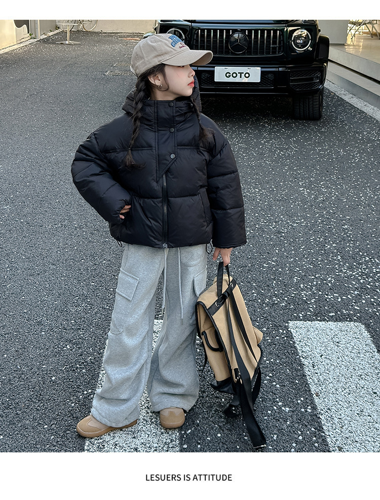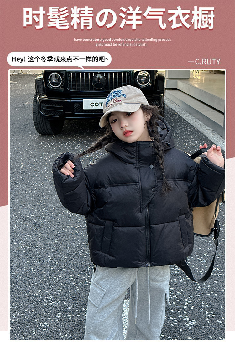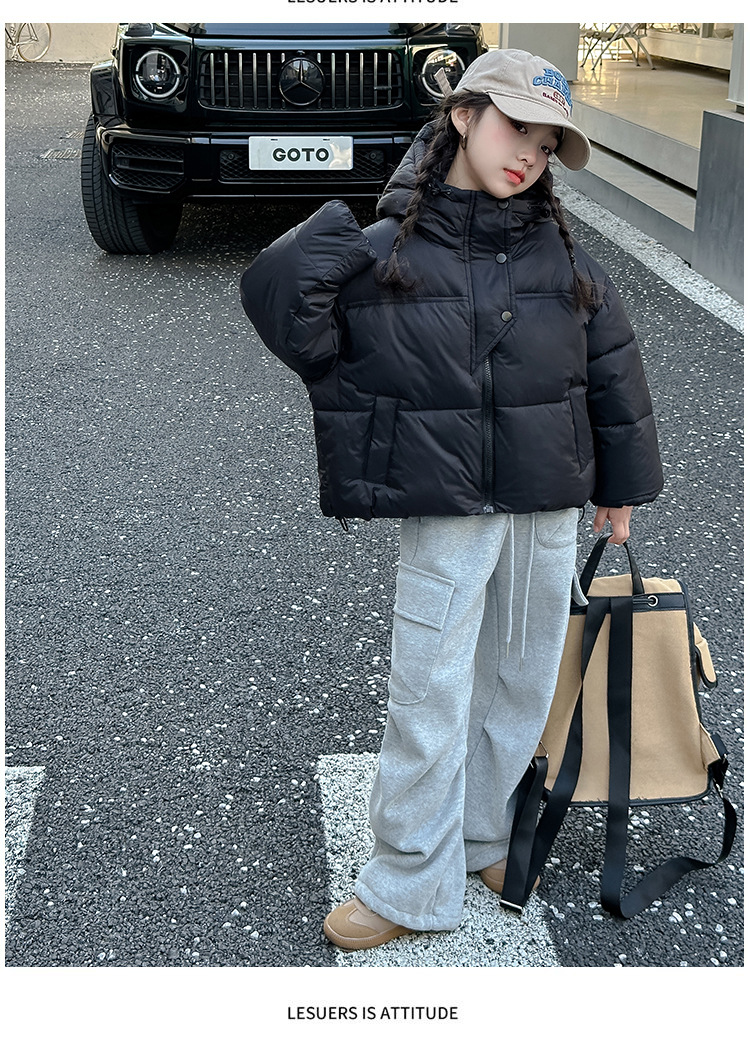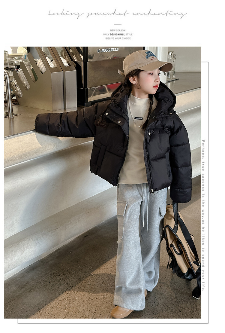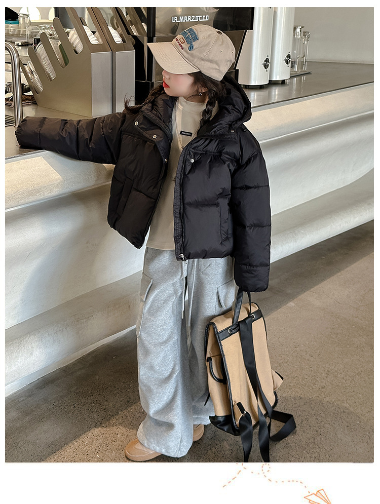 여아용 빵옷, 솜털 면 코트, 2025 겨울 신상품, 아동용 중대형 면 패딩 재킷, 두꺼운 짧은 면 코트스토어 가기