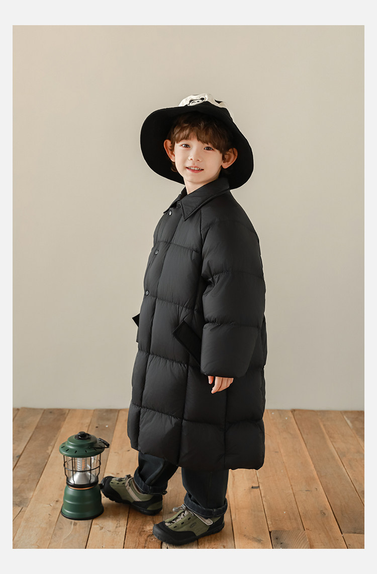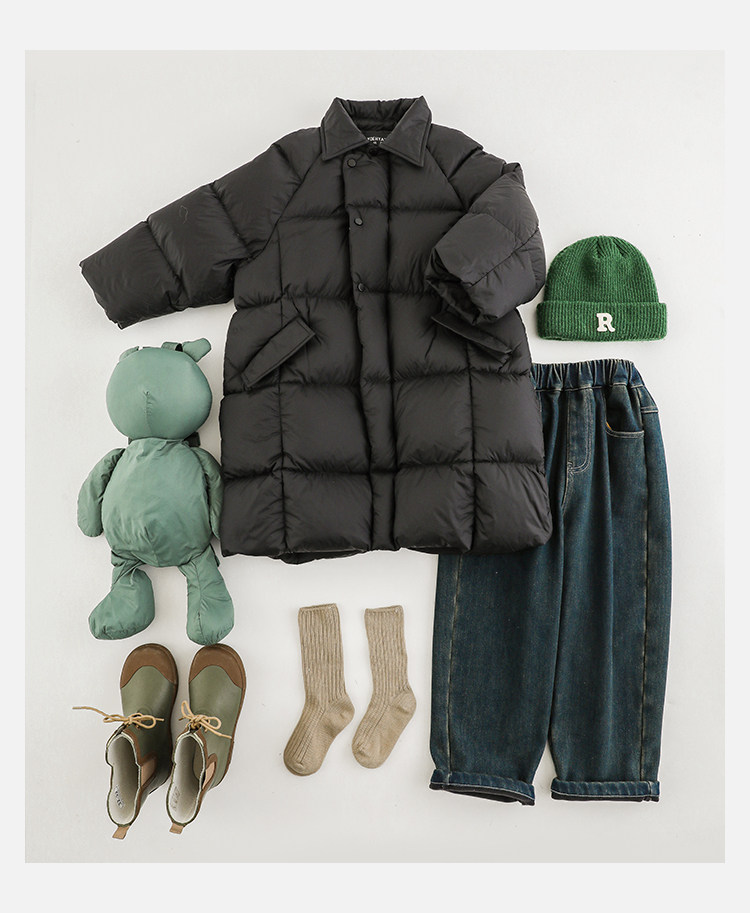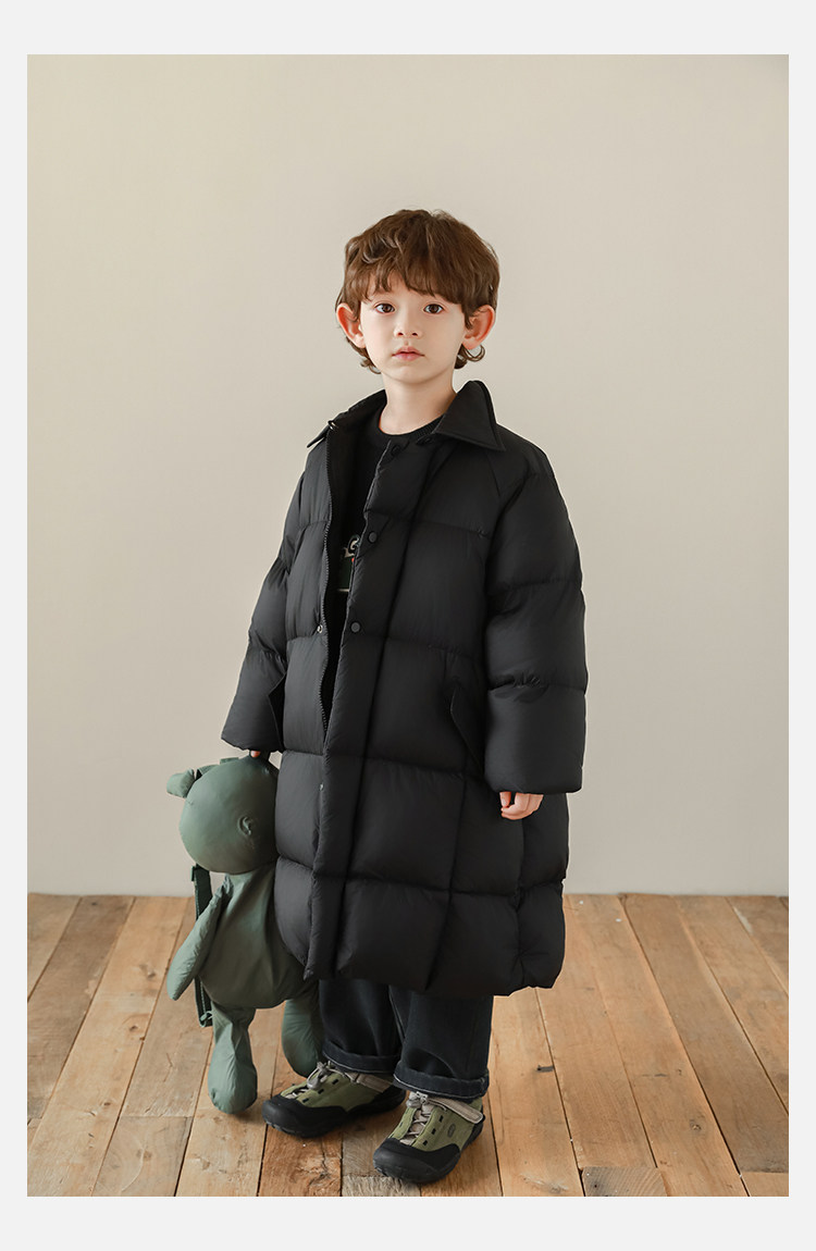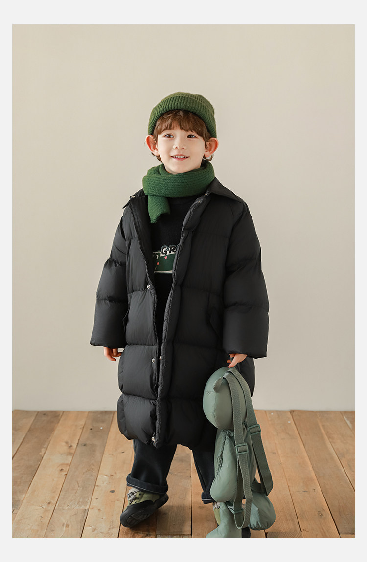 Wurib Boys 2024 새로운 중간 길이의 빛 따뜻한 다운 재킷 겨울 두꺼운 느슨한 듀폰 3 가지 방지 재킷