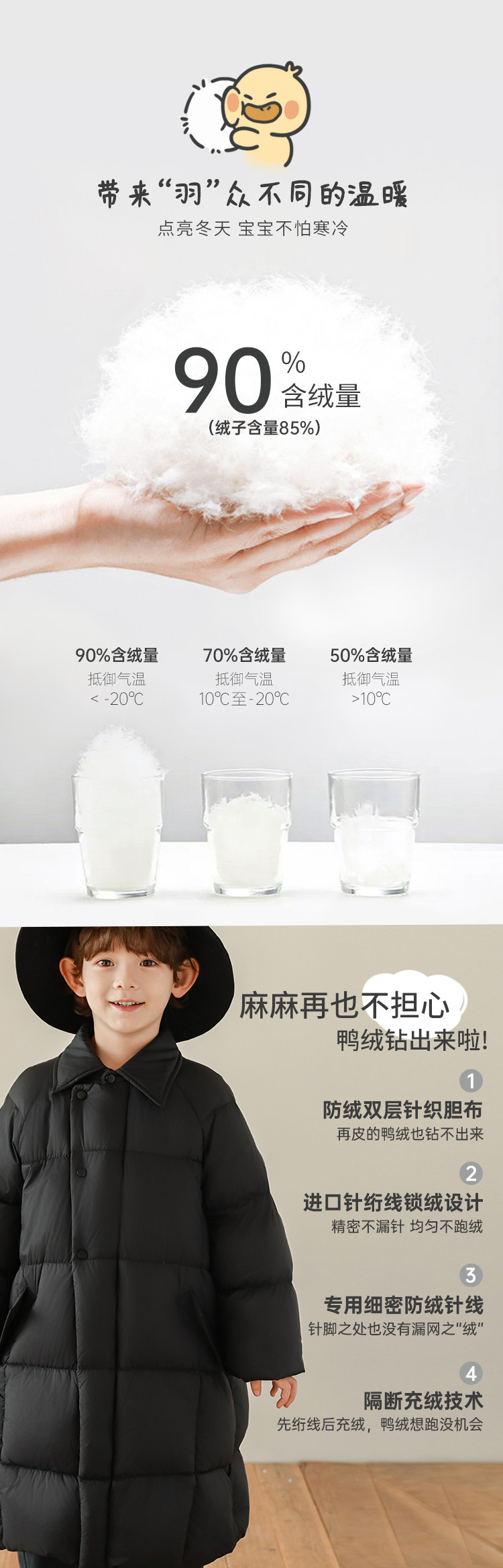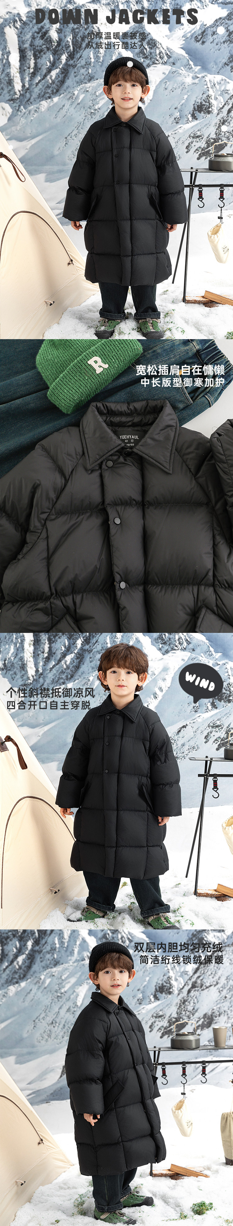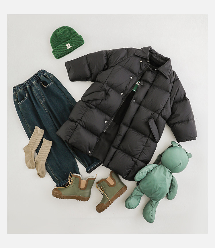 Wurib Boys 2024 새로운 중간 길이의 빛 따뜻한 다운 재킷 겨울 두꺼운 느슨한 듀폰 3 가지 방지 재킷