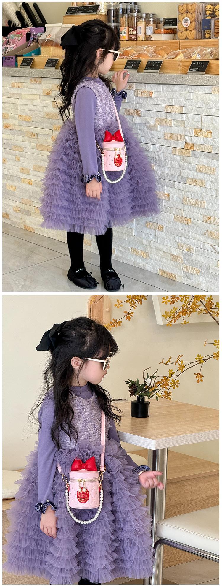 한국 스타일 어린이 버킷 가방 새로운 귀여운 활 핸드백 서양식 소녀의 진주 체인 어깨 크로스 백