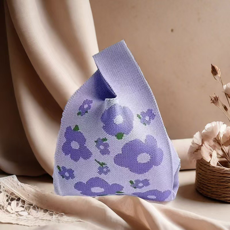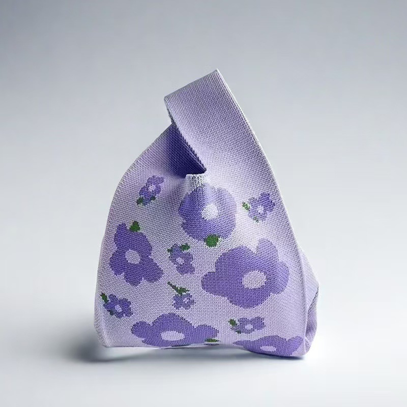 봄 새로운 즐겨 찾기-보라색 꽃 니트 휴대용 버킷 가방 모든 경기 손목 토트 여성용 싱글 숄더 백스토어 가기