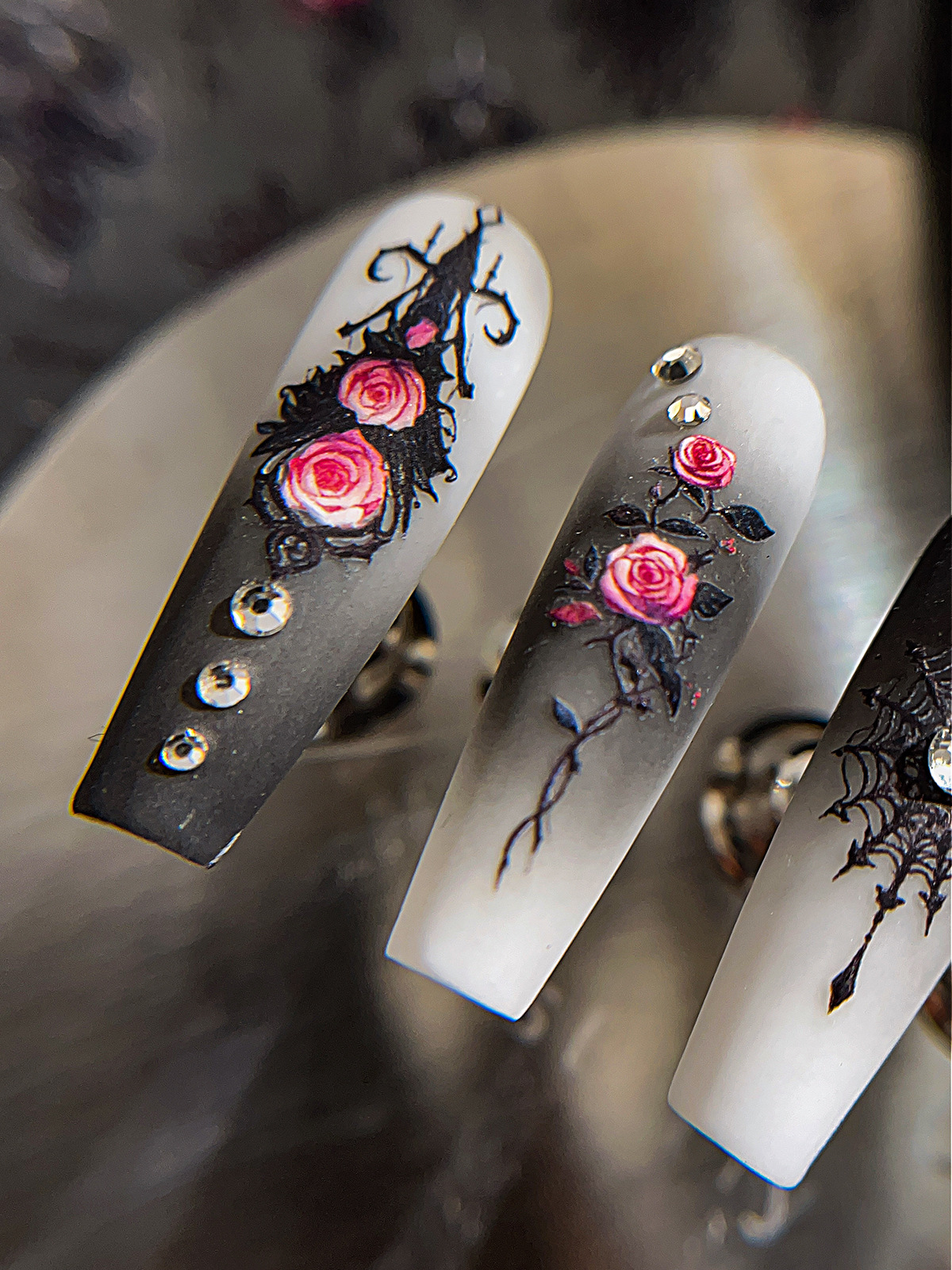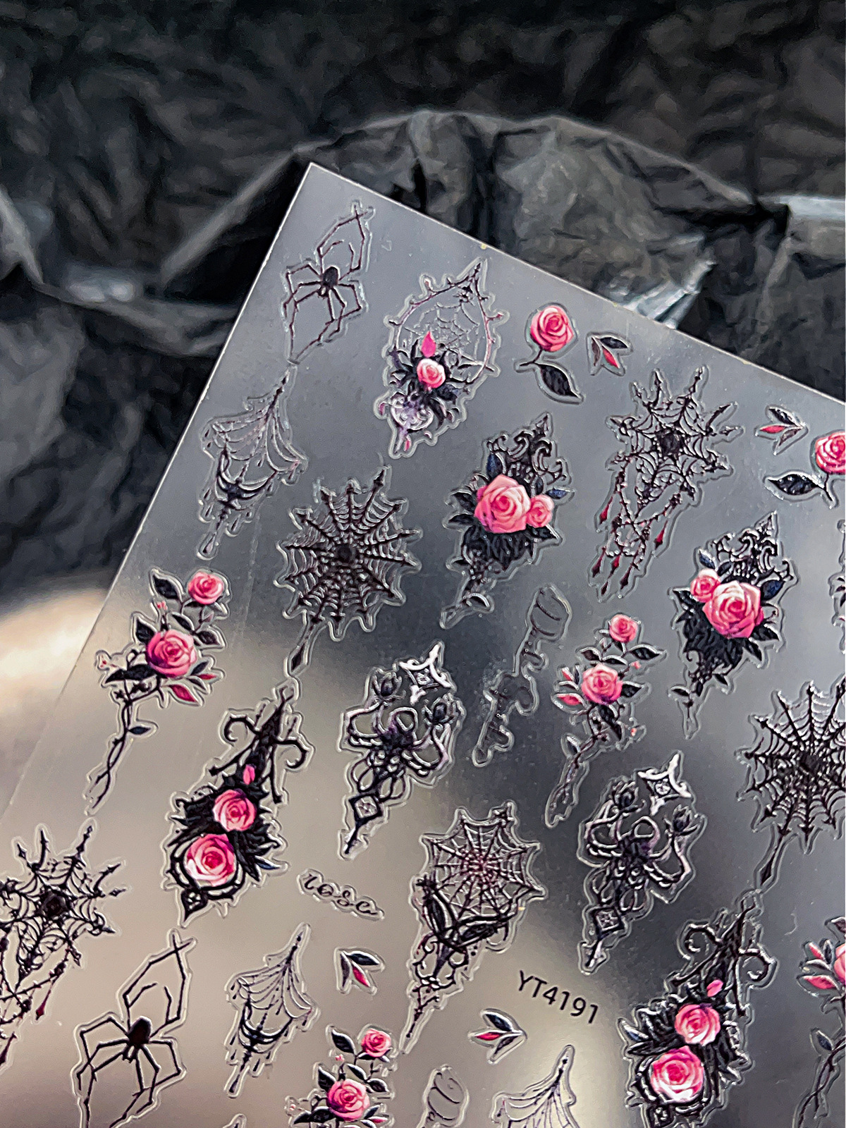 YITU 개미 그림 다크 로즈 네일 아트 스티커 스테레오 릴리프 Croheart 시리즈 접착 네일 스티커 YT4191