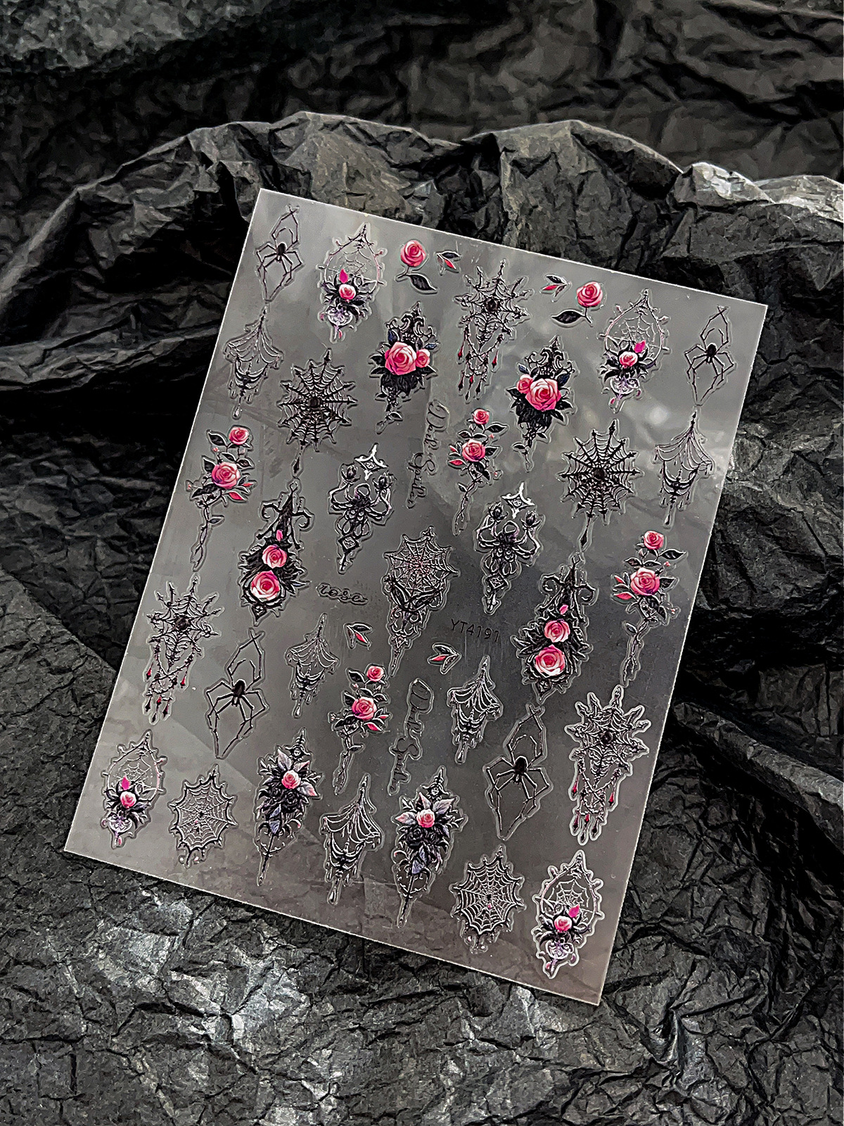 YITU 개미 그림 다크 로즈 네일 아트 스티커 스테레오 릴리프 Croheart 시리즈 접착 네일 스티커 YT4191스토어 가기