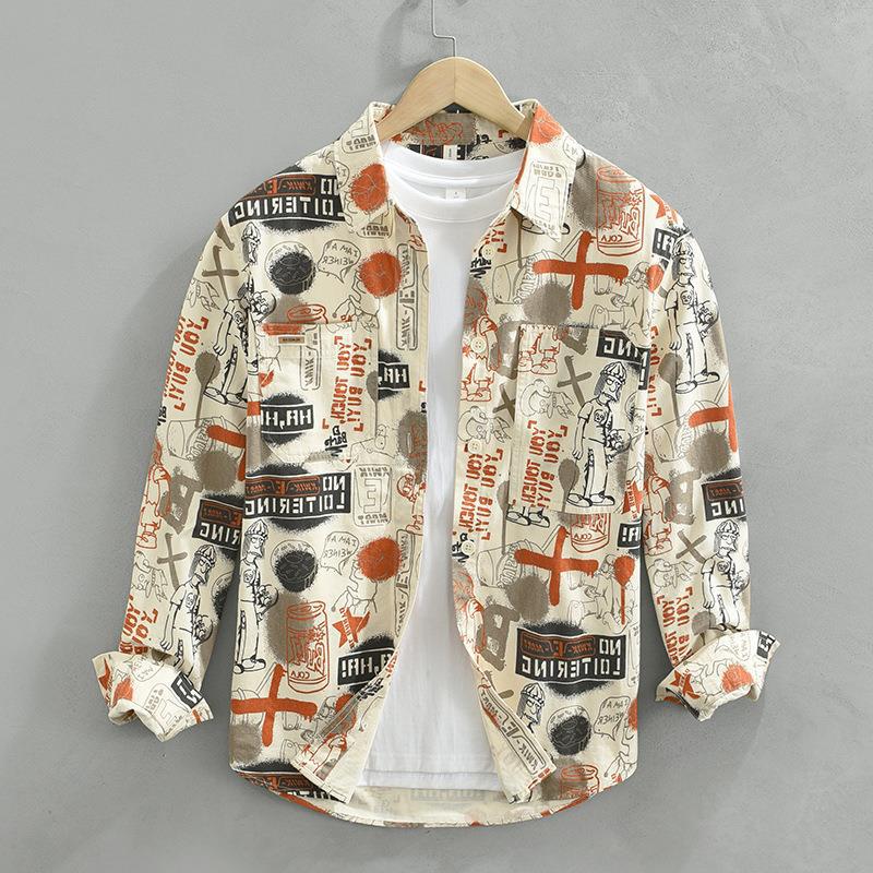 전체 인쇄 패션 디자인 센스 긴 소매 셔츠 남자의 봄과 가을 새로운 독특한 인쇄 캐주얼 셔츠 느슨한 손잡이