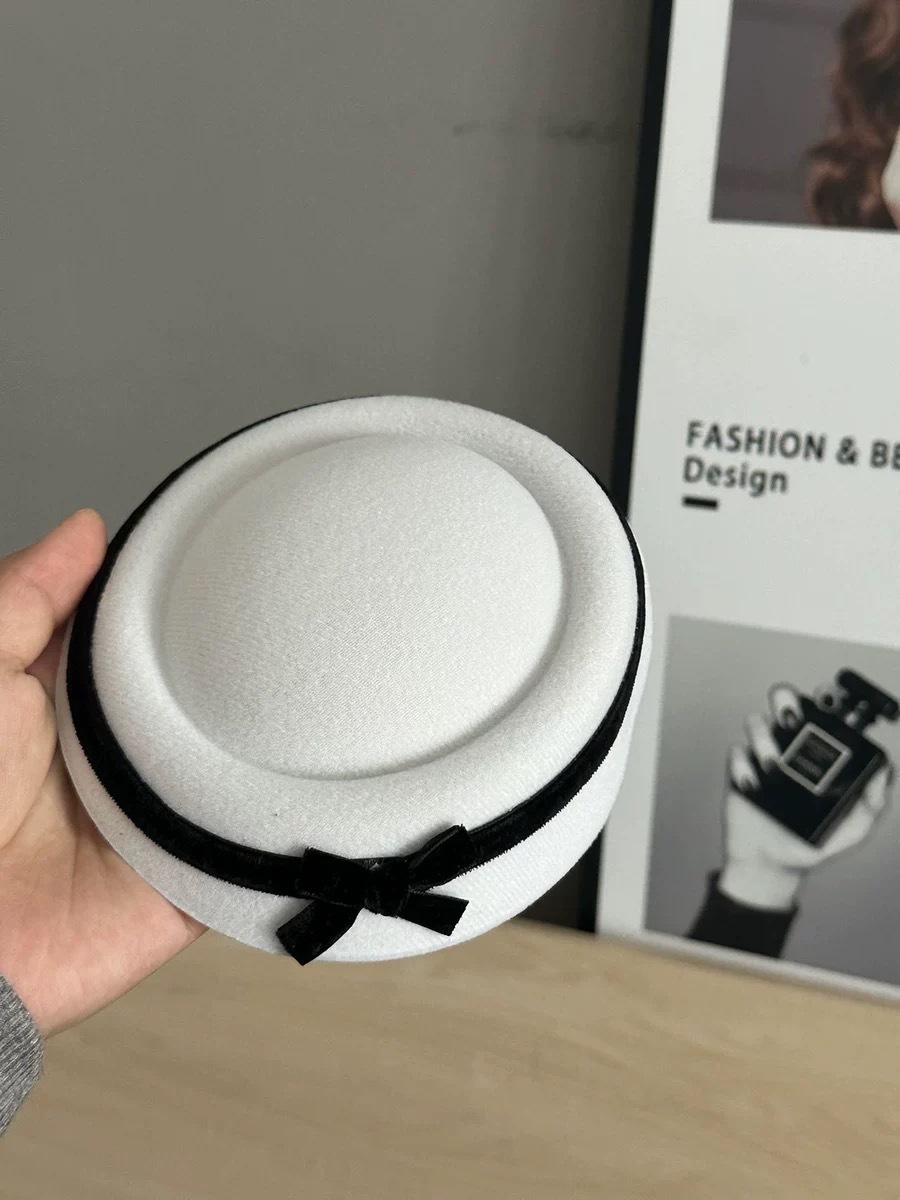 프렌치 레트로 핑크 활 작은 모자 네이비 스타일 가리 돔 헤드웨어 귀여운 틈새 상어 클립 헤어 액세서리