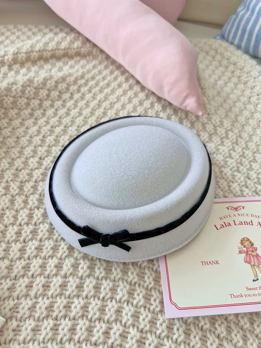 프렌치 레트로 핑크 활 작은 모자 네이비 스타일 가리 돔 헤드웨어 귀여운 틈새 상어 클립 헤어 액세서리스토어 가기