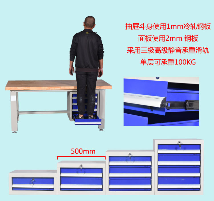 • 단단한 나무 2100*750 걸이형 서랍 2개 + 단일 도구 걸이 플레이트