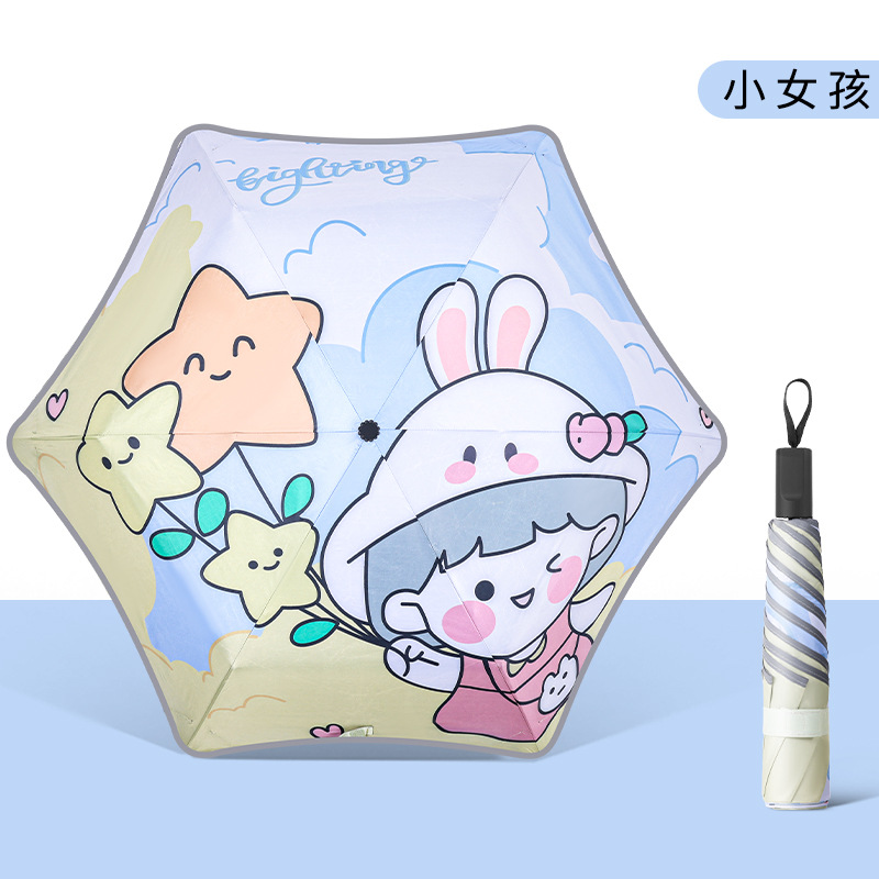 以上产品是两款近似产品.一款是三折圆角6骨方戳伤安全款式.一款伞普通三折手动款式.购买时请勿错拍.谢谢
