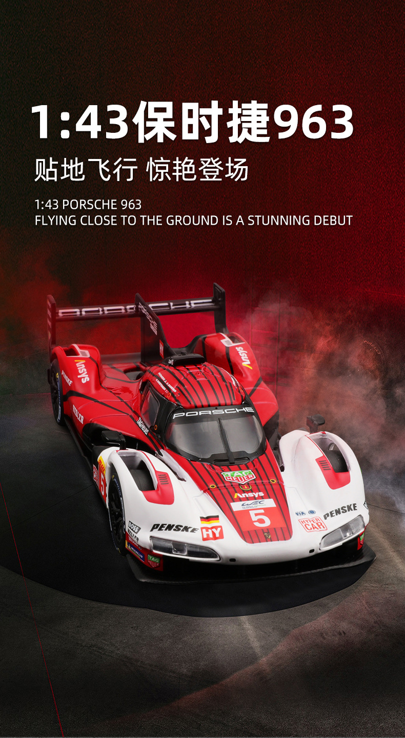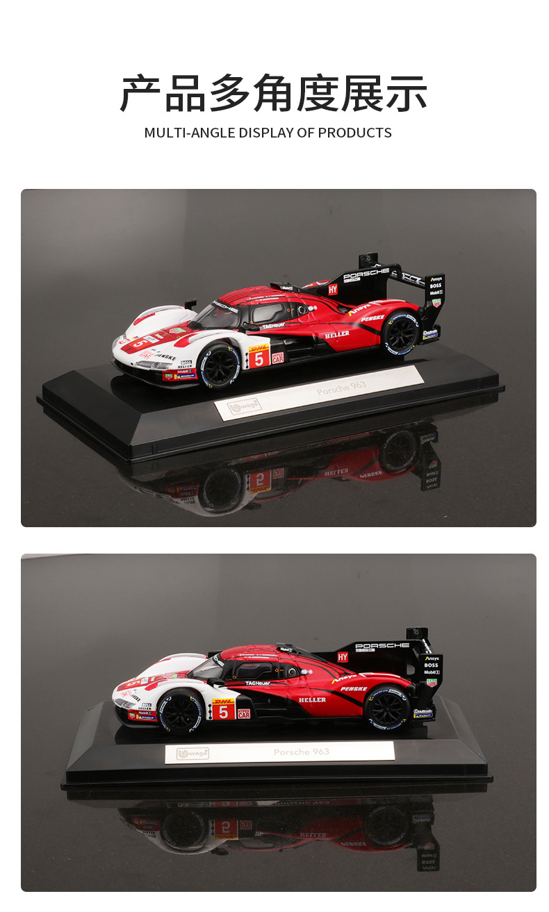 Bbugo 1:43 포르쉐 963 시뮬레이션 합금 자동차 모델 금속 자동차 모델 장식품 장난감 선물스토어 가기