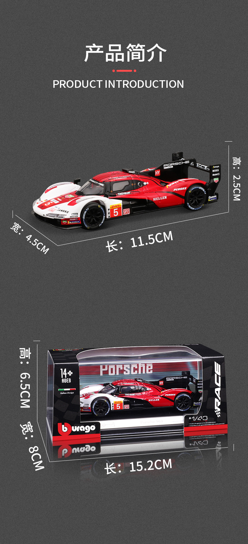 Bbugo 1:43 포르쉐 963 시뮬레이션 합금 자동차 모델 금속 자동차 모델 장식품 장난감 선물
