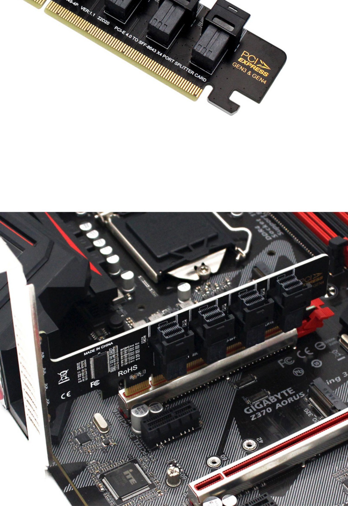 PCIeX16 에서 4 포트 U.2 NVME SFF-8643 SFF8639 확장 카드 PCIe4.0 분할 카드스토어 가기