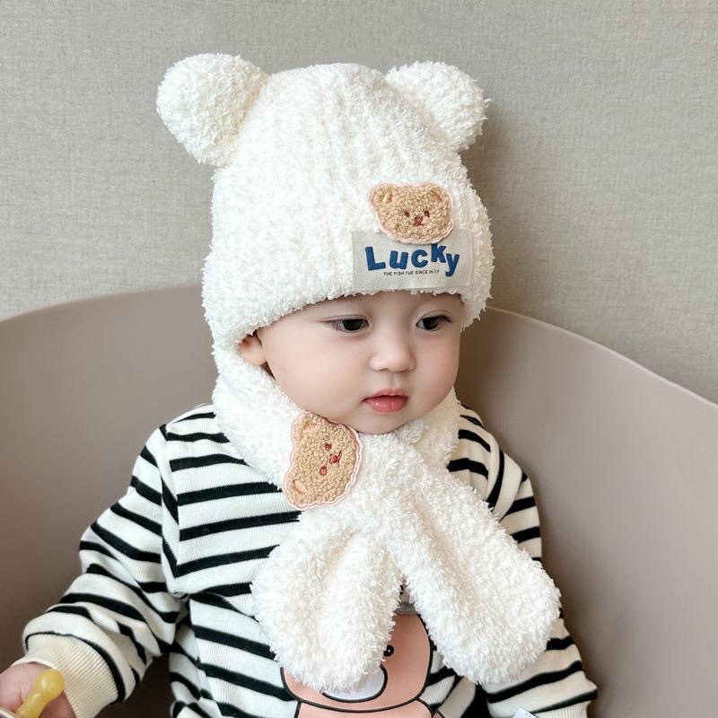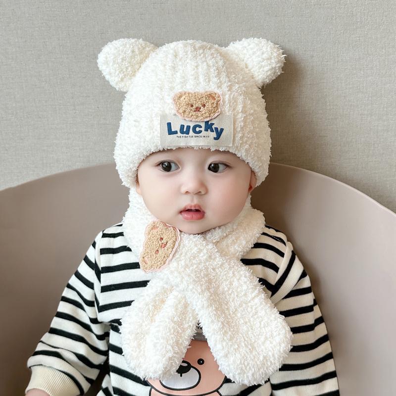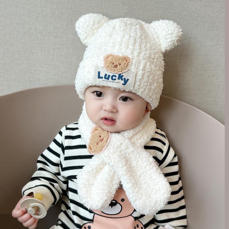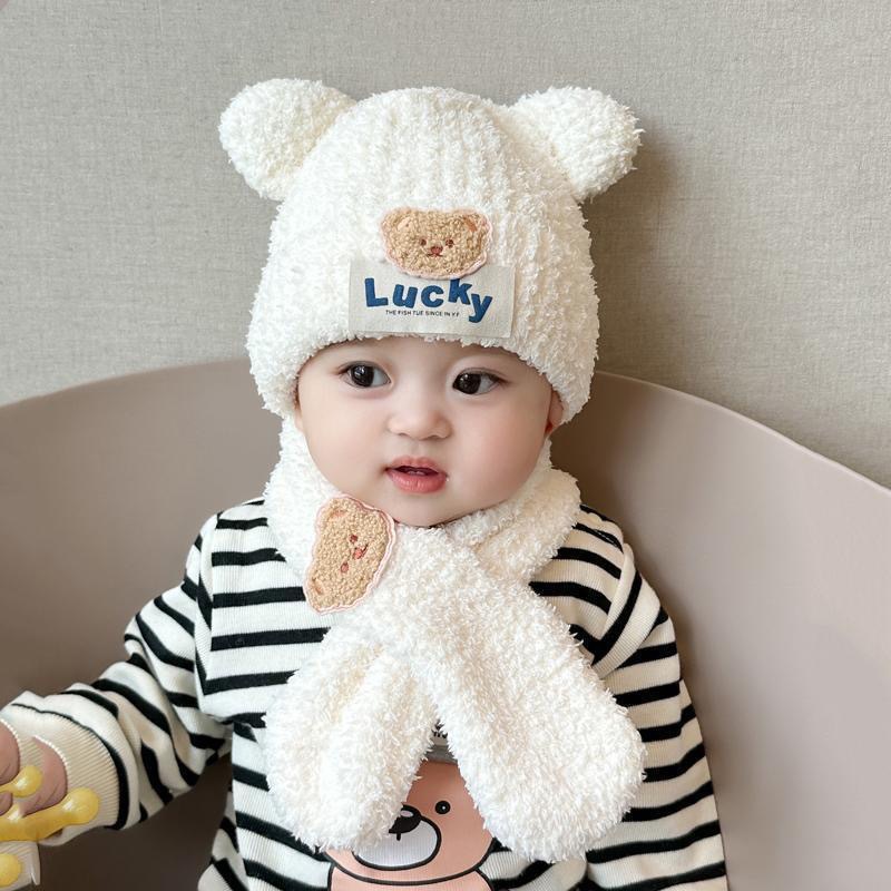 아기 봉제 통합 모자 어린이 겨울 기모 소년들과 소녀들의 내한성 따뜻한 모자 아기 곰 귀 보호 모자 조수