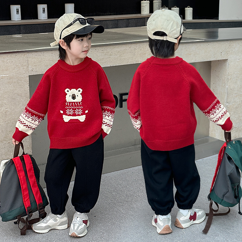 소년 가을 겨울 한국 스웨터 2024 새로운 어린이 겨울 두껍게베이스 셔츠 아기 겨울 스웨터